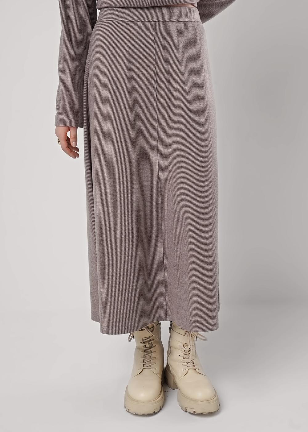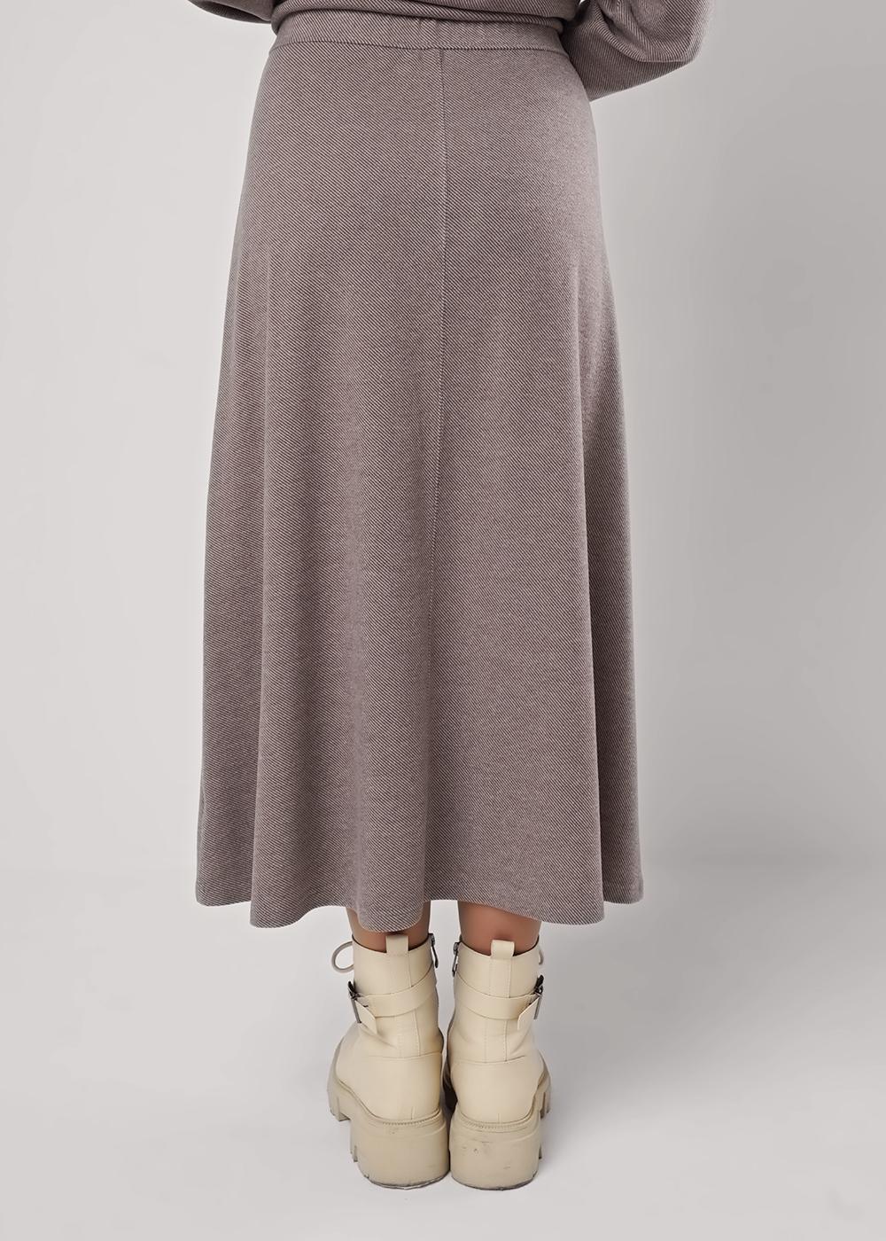 "Описание: Юбка миди слегка расклешенного силуэта из поливискозного трикотажного полотна джерси. По талии пояс на резинке. По переду и спинке расстроченный средний шов.