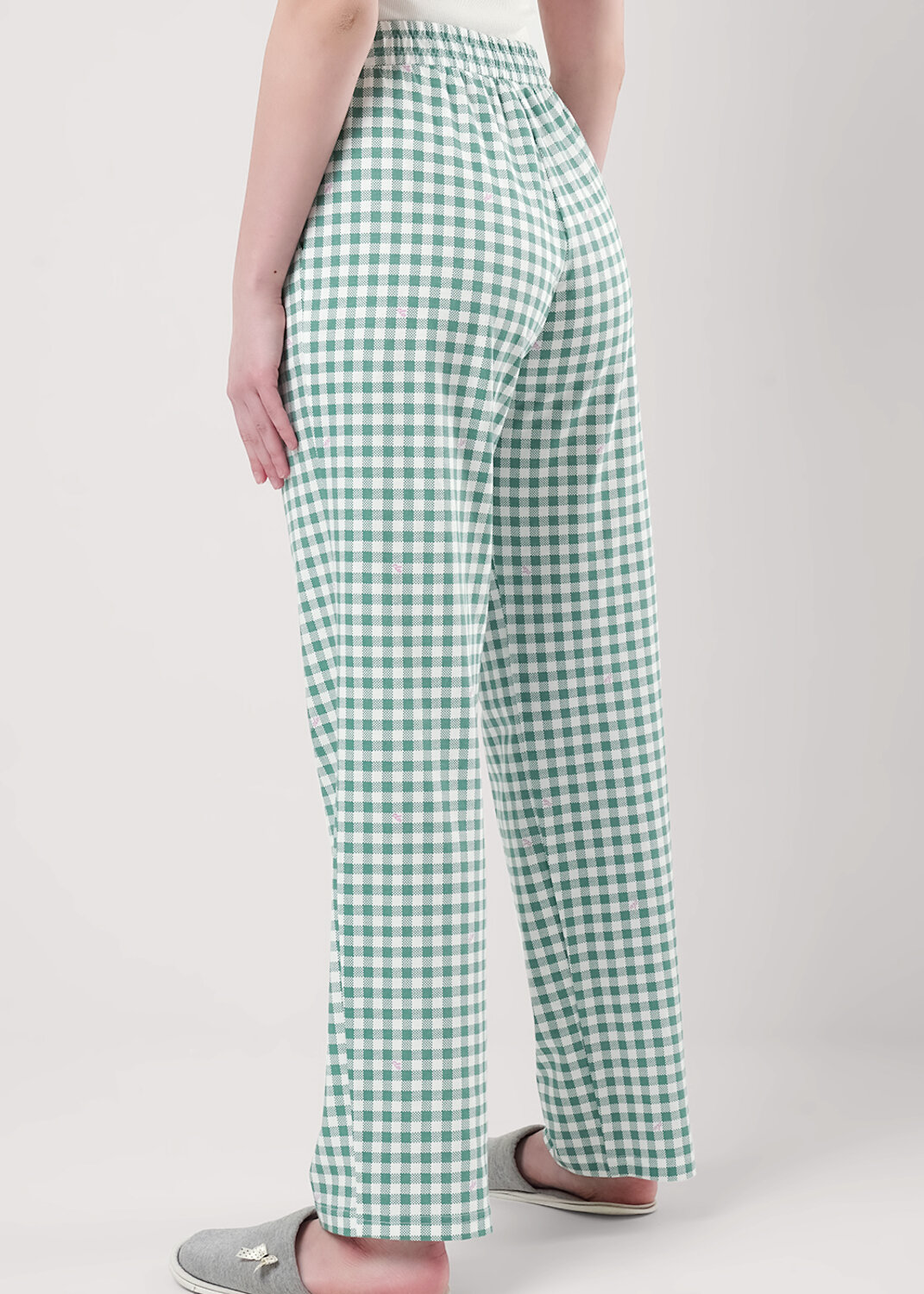 Брюки прямые для дома из хлопкового трикотажного полотна. Пояс на внутренней резинке, боковые карманы с отрезным бочком.