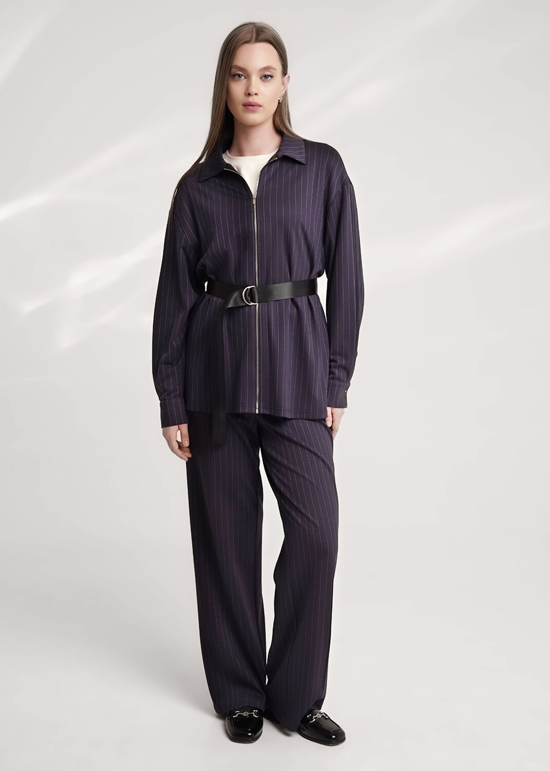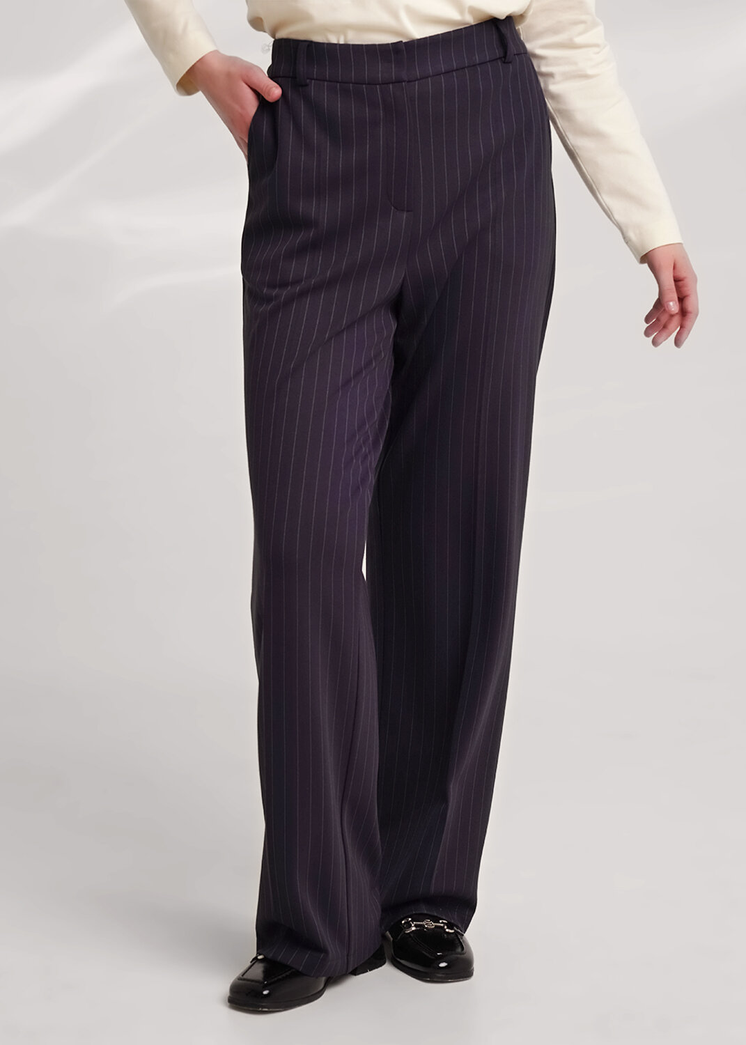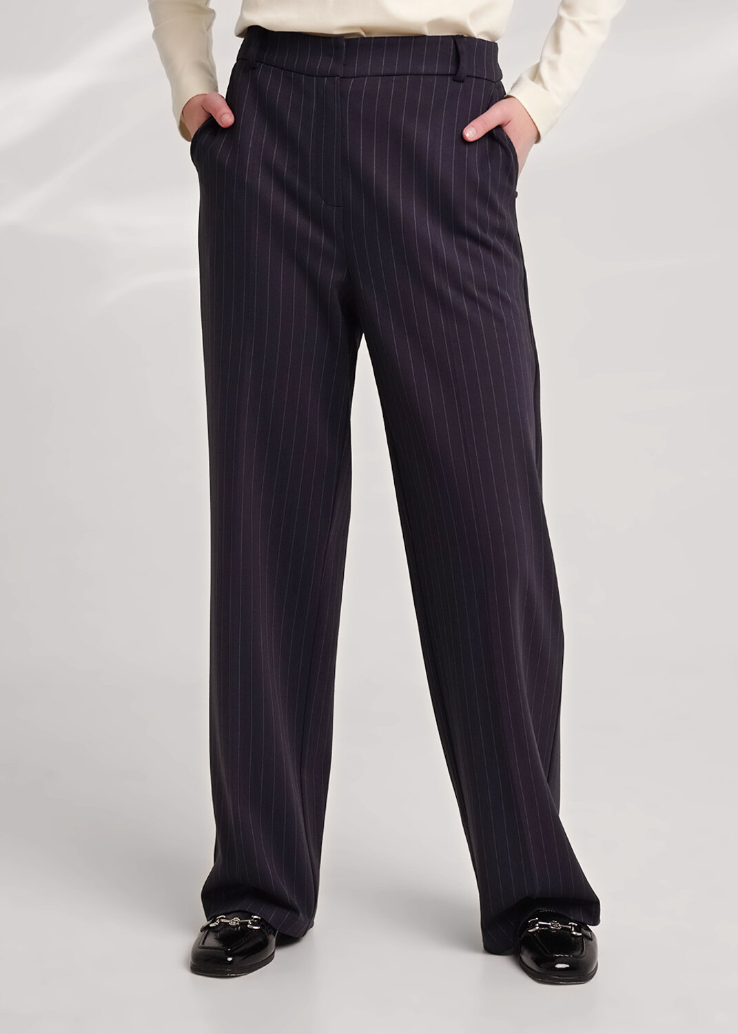 Брюки зауженные из поливискозного трикотажного полотна джерси. Притачной пояс со шлёвками, по спинке на внутренней резинке. Спереди гульфик с молнией и крючком. Боковые карманы с отрезным бочком.