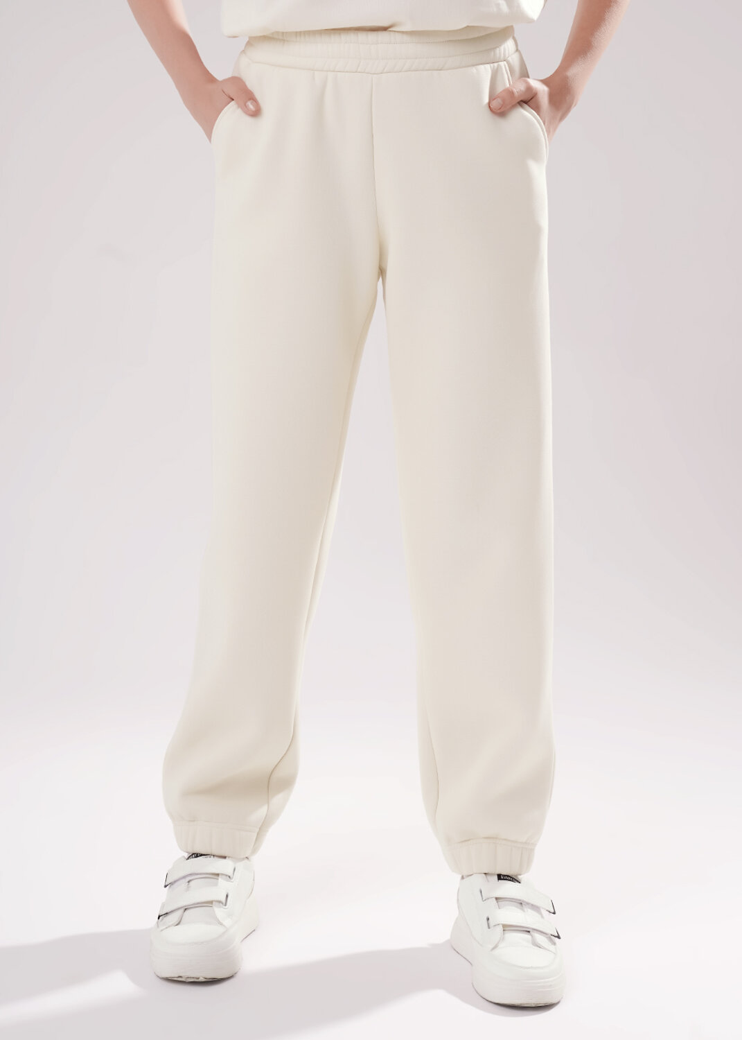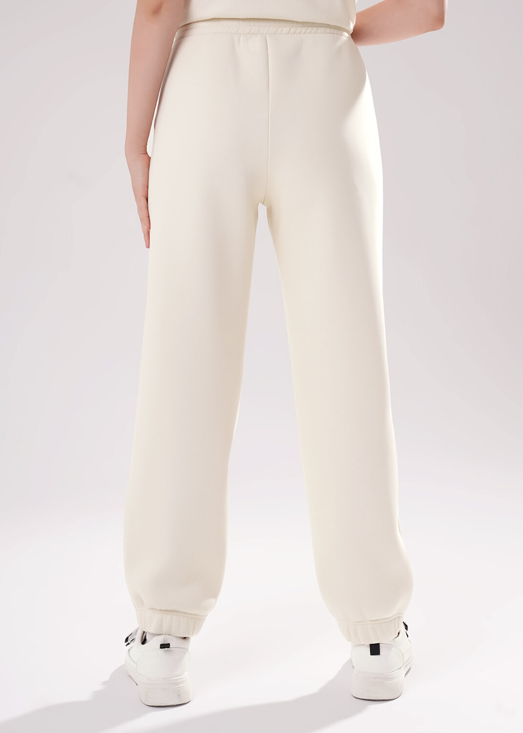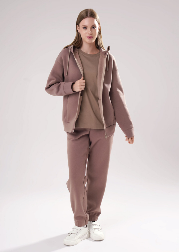 Брюки спортивные из трикотажного полотна футер с начесом,зауженные книзу. По талии пояс на резинке и внутренним шнуром. По низу брюк подгибка с внутренней резинкой. Боковые карманы с отрезным бочком.