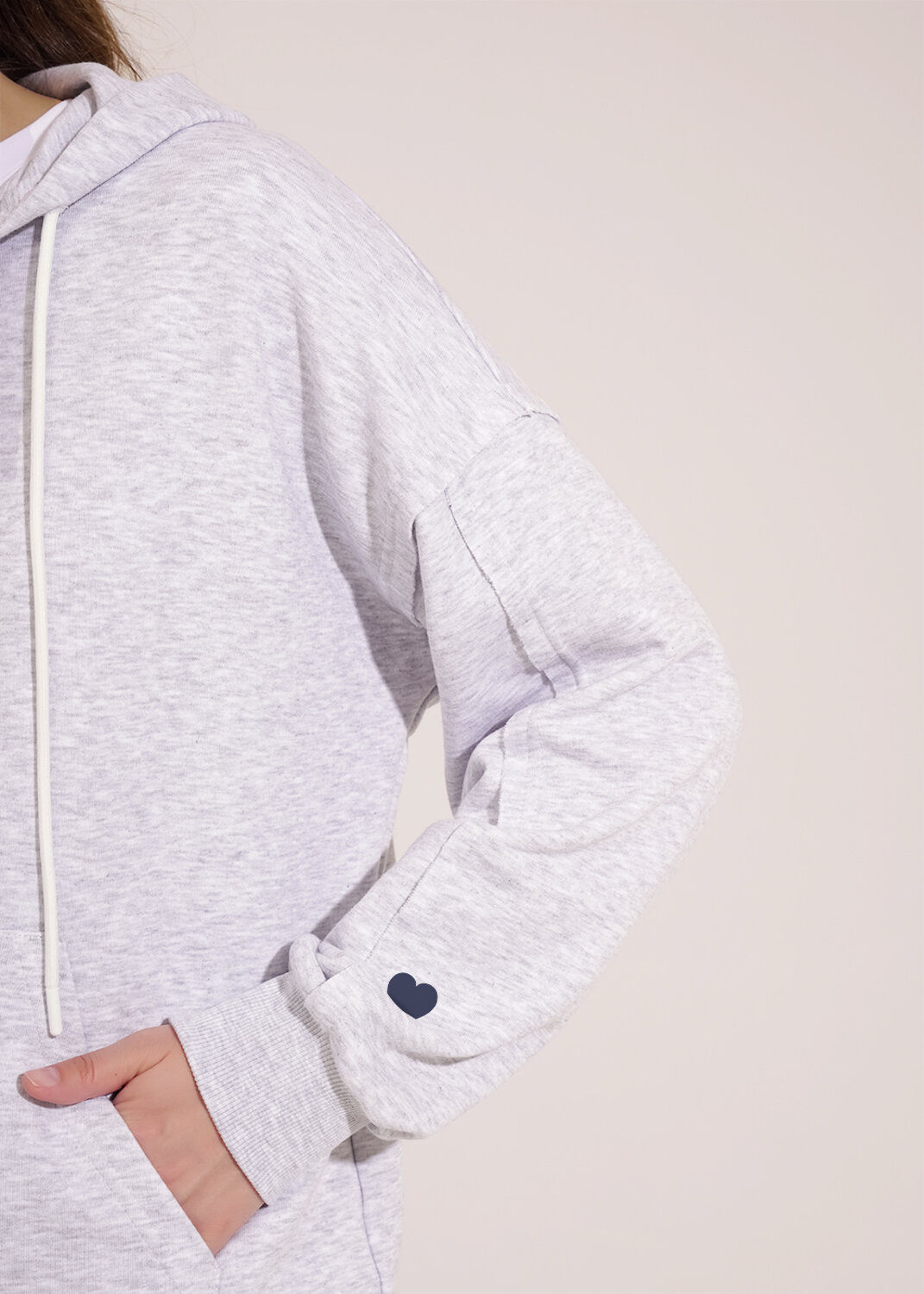 Куртка спортивная из трикотажного полотна футер,на молнии. По горловине капюшон на подкладе со шнуром. Длинный рукав со спущенной линией плеча, нашивка.По низу рукава и изделия манжеты. Спереди карман кенгуру, принт.По пройме и шву рукава открытый срез.