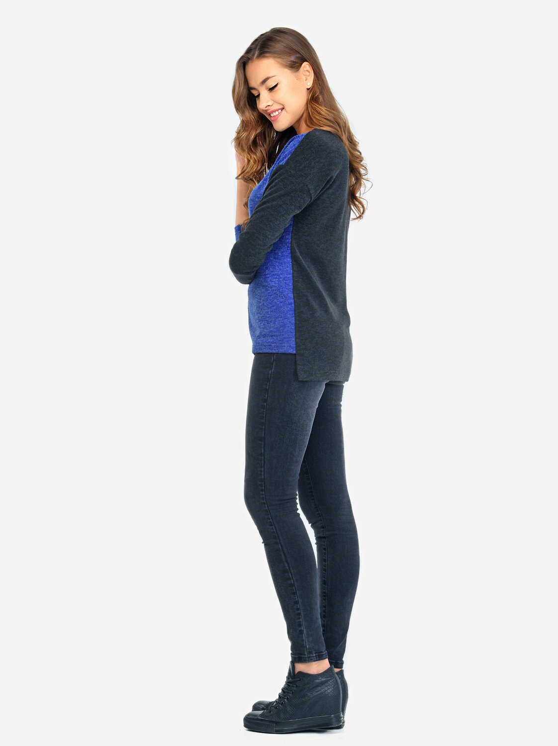 Интересный крой, минимализм в деталях и гармоничный силуэт отличают идеальный джемпер на каждый день. Свободный крой и асимметрия низа, мягкая спущенная линия плеча, трендовое сочетание разных цветов в одном изделии создают яркий индивидуальный образ. Круглый вырез, обработанный притачной планкой, легко заполнить оригинальным украшением. Комфортное и обволакивающее полотно достаточно простое в уходе и износоустойчивое в носке, прекрасно держит форму.
