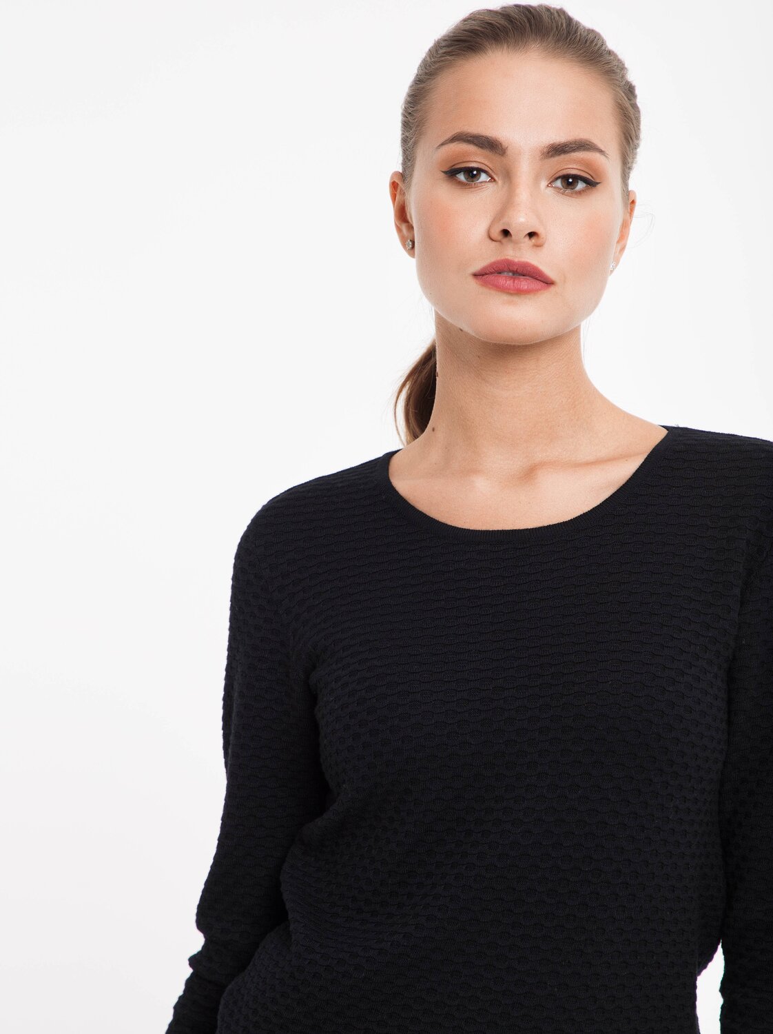 Фактурный джемпер, идеально подходящий на каждый день. Стильный внешний вид, сочетающий классику и последние модные тенденции, придётся по душе каждой девушке.