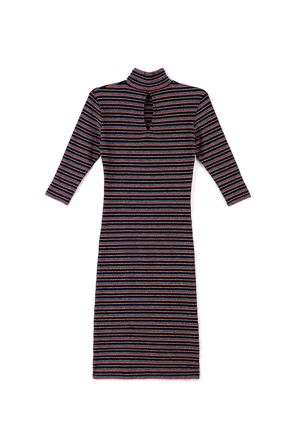 Длинный рукав, соблазнительный разрез "капелька" по спинке, высокая горловина, трендовые полоски, стильный блеск нитей люрекса - это трикотажное платье гарантированно станет вашим любимым!
