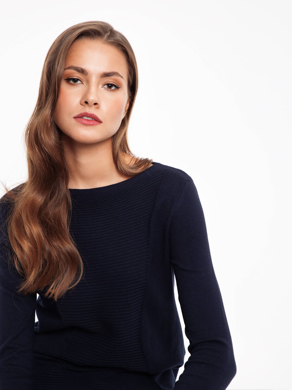 Джемпер связан из эластичной, приятной к телу, теплой и практичной пряжи с высоким содержанием модала в составе, что придает ему необычайную тактильную мягкость.