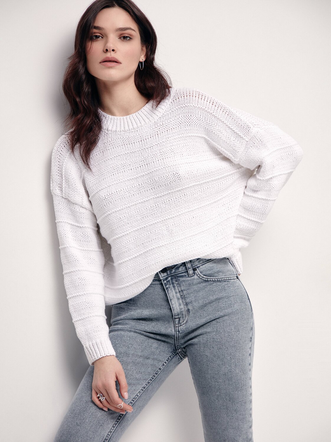 Фактурный джемпер крупной вязки из натурального хлопка LDK 180 поможет создать множество новых образов, не изменяя собственному стилю.
