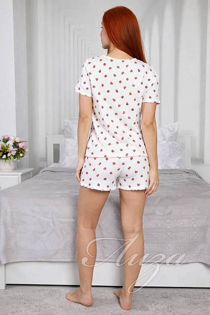 Пижама женская с шортами это удобная и практичная одежда для дома. Домашний костюм состоит из футболки и шорт с удобной посадкой и резинкой на поясе.