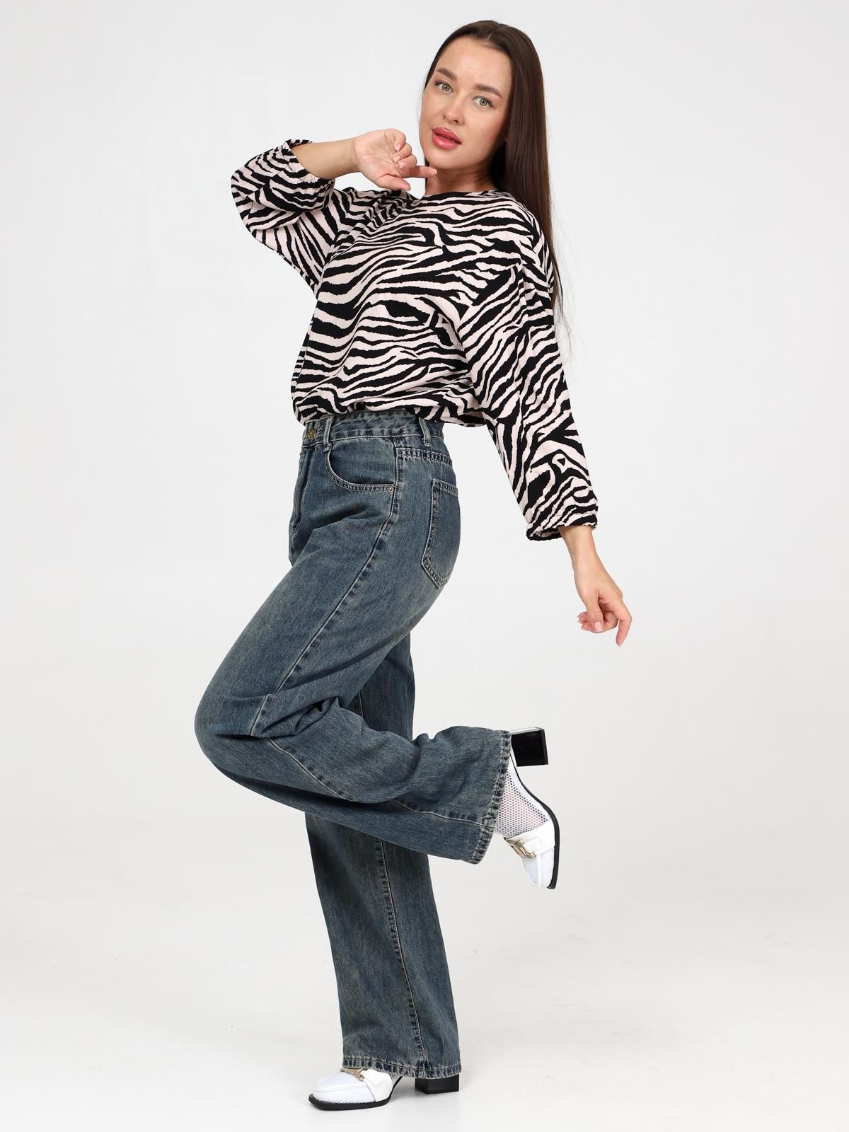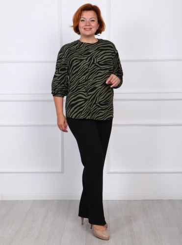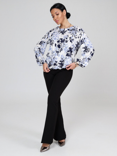 Женская блузка из штапеля прямого силуэта с круглым вырезом горловины под окантовку. Спущенное плечо, рукав втачной 7/8. Низ рукава - на резинке.