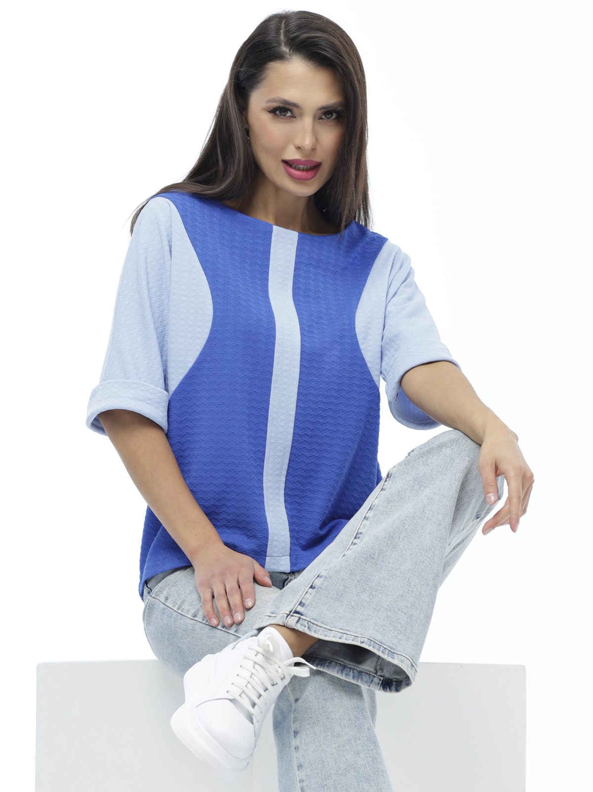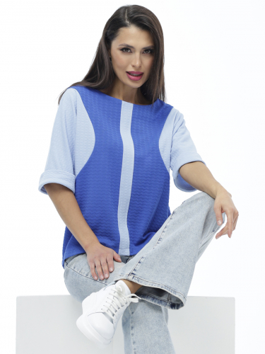 Комбинированная блузка с контрастными вставками — стильный вариант, который не только разнообразит гардероб, но и преобразит фигуру. А все благодаря удачному дизайну, который визуально сужает верхнюю часть тела и создает изящные очертания. Классическая длина, прямой силуэт и свободный укороченный рукав делают модель универсальной. В эффектной блузке как полные, так и стройные женщины будут чувствовать себя уверенно и привлекательно. Еще одно преимущество в том, что сочетать модель с другими элементами гардероба не составит труда: она с легкостью впишется в офисный дресс-код, дополнит любой повседневный или вечерний образ. Блузка выполнена из приятного трикотажа. Поэтому мы рекомендуем стирать изделие в деликатном режиме при температуре до 30 градусов без отжима.