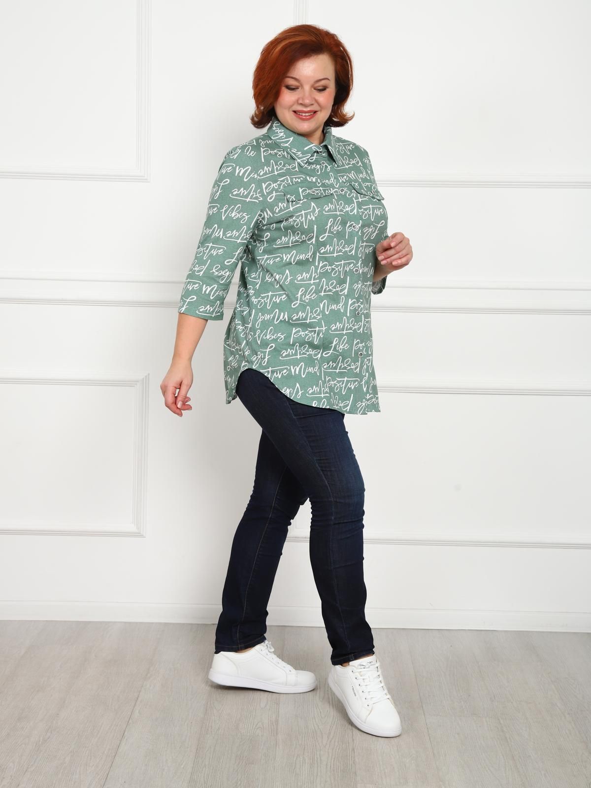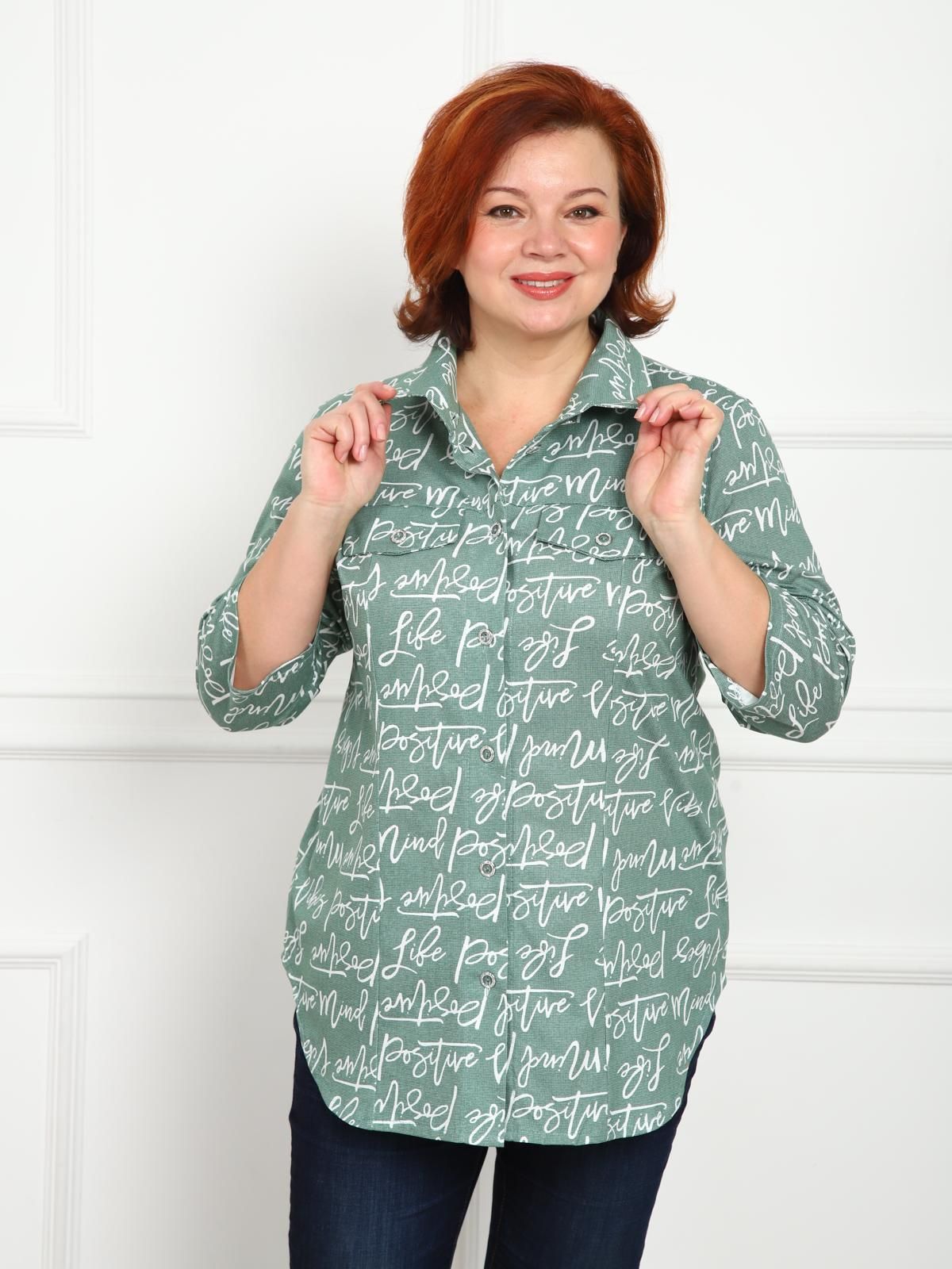 Универсальная хлопковая рубашка с рукавом 3/4. Свободный крой и рельефы на груди обеспечивают хорошую посадку. Закругленный низ изделия закрывает бедра.