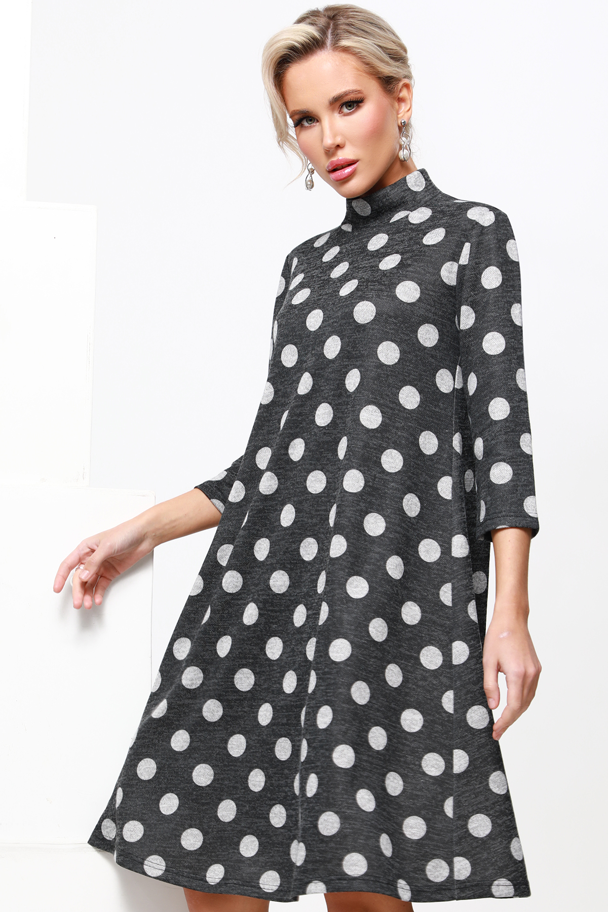Трикотажное платье А-силуэта с принтом — стильный и невероятно комфортный вариант, который уместен как в повседневной жизни, так и на работе. Летящий фасон расширяется книзу, не подчеркивает недостатки фигуры и придает легкости любому образу. Благодаря этому платье роскошно смотрится как на стройных женщинах, так и на модницах плюс-сайз. Полуприлегающий воротник-стойка, рукава длиной ¾ и вырез-капелька на спинке делают модель более утонченной. Платье украшает самый модный принт сезона — в горошек. Классическая расцветка смотрится эффектно, женственно и нарядно. Изделие выполнено из трикотажного материала, который хорошо тянется, согревает и приятен на ощупь. Чтобы платье-водолазка не деформировалось и радовало вас как можно дольше, рекомендуем стирать в деликатном режиме при температуре не выше 30 градусов.