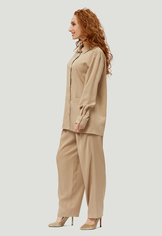 Универсальная, модная рубашка прямого силуэта в классическом стиле комфортной длины от российского производителя D’imma Fashion Studio из натуральной ткани - олицетворение женственности, привлекательности и уверенности. Модель с классическим отложным воротником на стойке, застежкой на пуговицы на цельнокроеной планке выглядит максимально расслабленно и стильно. Накладные настрочные карманы дополняют образ и создают комфорт. Классическую элегантность этой рубашке придают манжеты с разрезами на рукавах и цельнокроеная кокетка по спинке, переходящая на полочку. От кокетки вниз встречная складка. Рубашка свободного силуэта будет изумительно смотреться не только на моделях из дизайнерских коллекций, но и на корпулентных девушках. Можно дополнять яркими аксессуарами и менять образ под настроение.