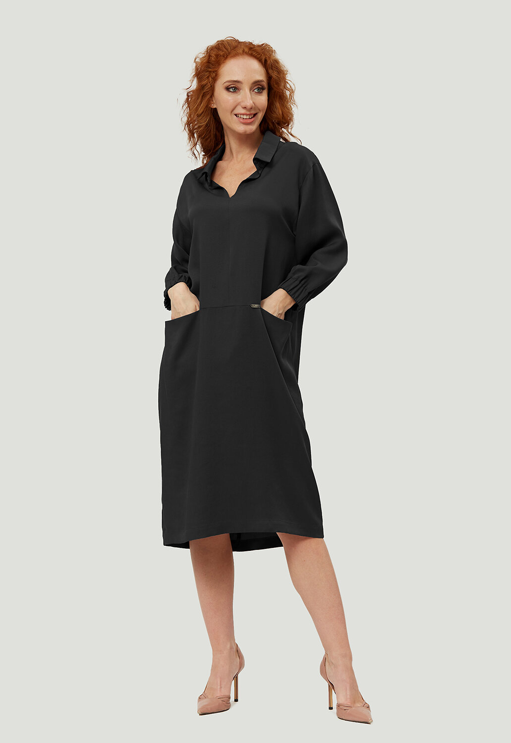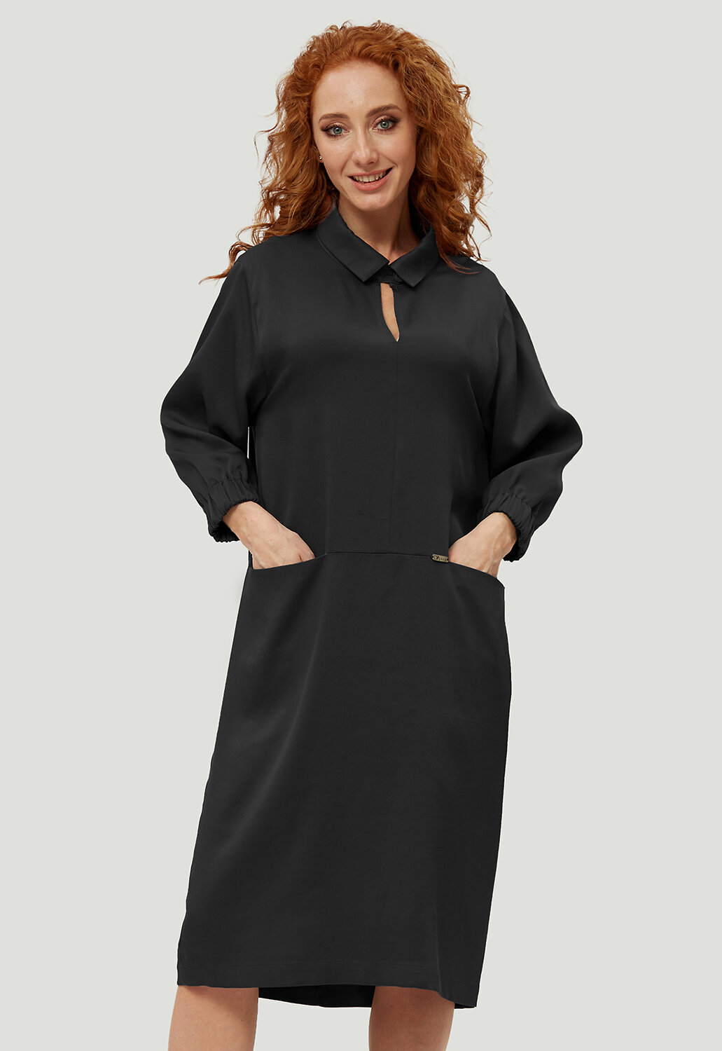 Стильное, универсальное платье в минималистическом кэжуал - стиле комфортной длины от российского производителя D’imma Fashion Studio из натуральной ткани - олицетворение женственности, привлекательности и уверенности. Модель с актуальным, отложным воротником на стойке с застежкой на пуговицу с навесной петлей. Расстегнув пуговицу, можно оформить V-образный вырез, визуально удлиняющий шею. Втачной рукав с цельнокроеной манжетой на резинке делает его интересным и модным. По переду горизонтальный рез ниже линии талии с цельнокроеными карманами придаст модели удобства и стиля. Данное платье свободного силуэта будет изумительно смотреться не только на моделях из дизайнерских коллекций, но и на корпулентных девушках. Можно дополнять яркими аксессуарами и менять образ под настроение. Модель создана для тех, кто любит быть индивидуальным и неповторимым.