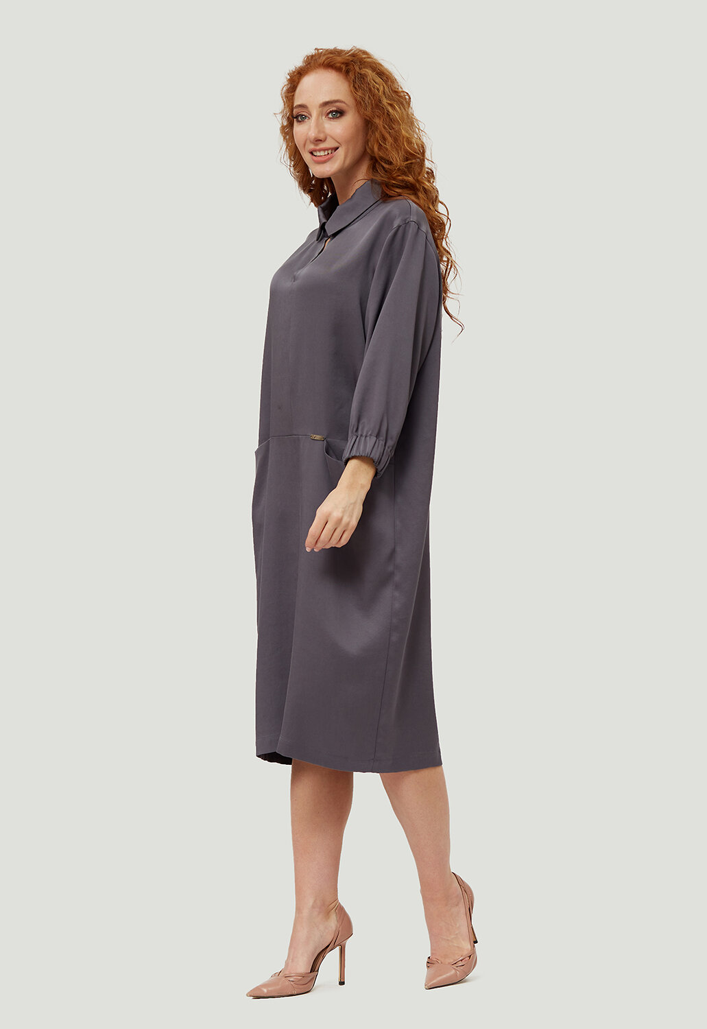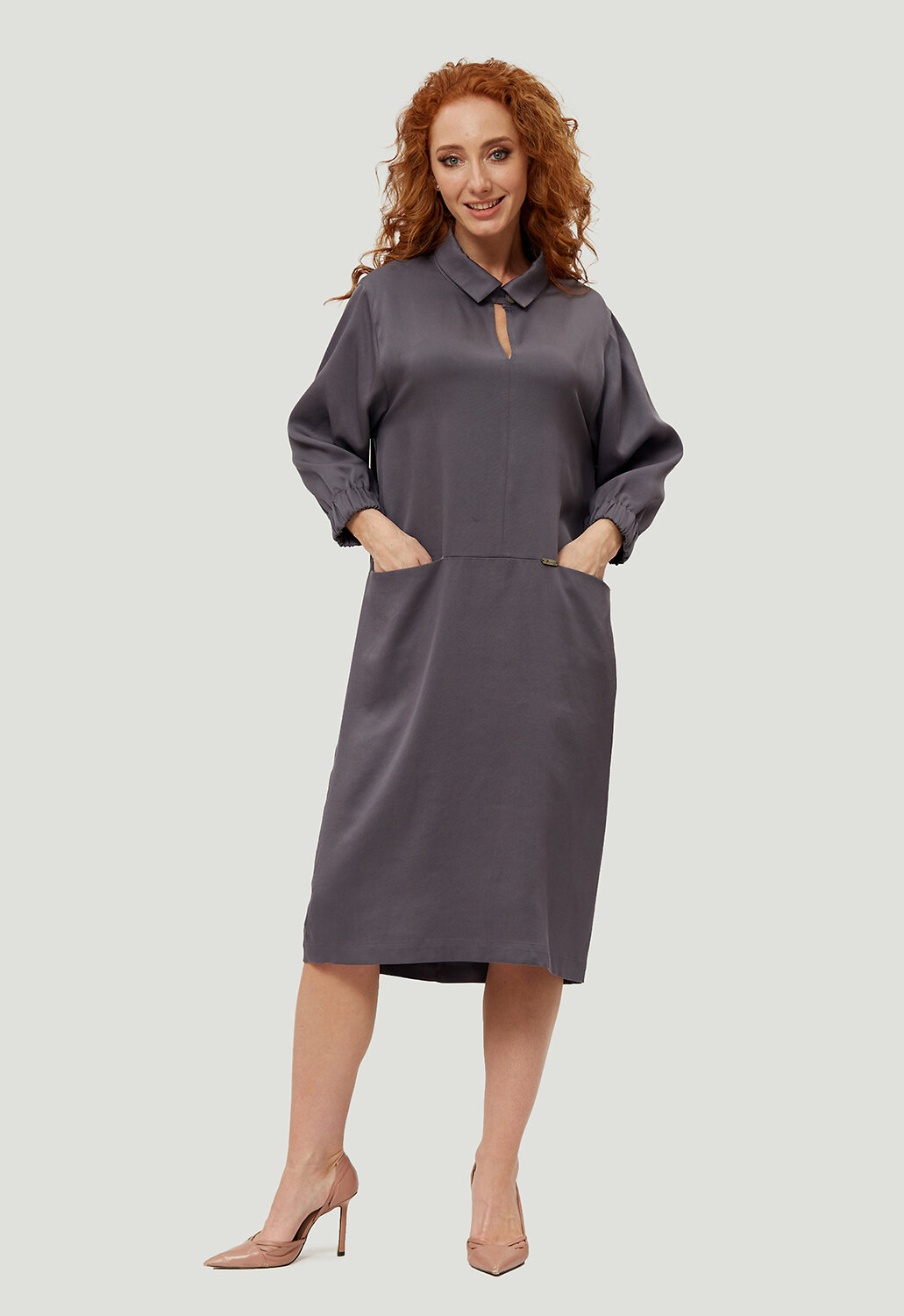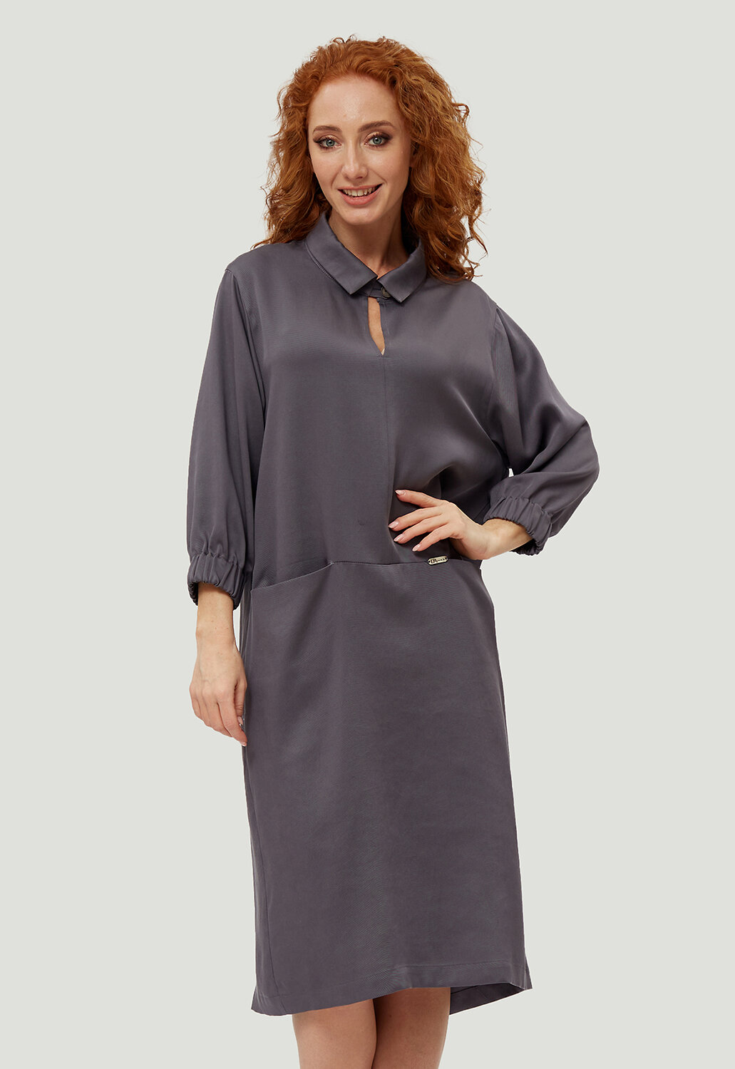 Стильное, универсальное платье в минималистическом кэжуал - стиле комфортной длины от российского производителя D’imma Fashion Studio из натуральной ткани - олицетворение женственности, привлекательности и уверенности. Модель с актуальным, отложным воротником на стойке с застежкой на пуговицу с навесной петлей. Расстегнув пуговицу, можно оформить V-образный вырез, визуально удлиняющий шею. Втачной рукав с цельнокроеной манжетой на резинке делает его интересным и модным. По переду горизонтальный рез ниже линии талии с цельнокроеными карманами придаст модели удобства и стиля. Данное платье свободного силуэта будет изумительно смотреться не только на моделях из дизайнерских коллекций, но и на корпулентных девушках. Можно дополнять яркими аксессуарами и менять образ под настроение. Модель создана для тех, кто любит быть индивидуальным и неповторимым.