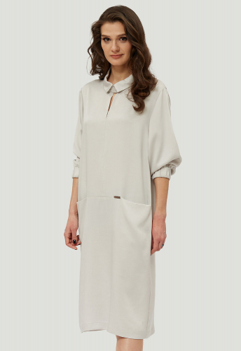 Стильное, универсальное платье в минималистическом кэжуал - стиле комфортной длины от российского производителя D’imma Fashion Studio из натуральной ткани - олицетворение женственности, привлекательности и уверенности. Модель с актуальным, отложным воротником на стойке с застежкой на пуговицу с навесной петлей. Расстегнув пуговицу, можно оформить V-образный вырез, визуально удлиняющий шею. Втачной рукав с цельнокроеной манжетой на резинке делает его интересным и модным. По переду горизонтальный рез ниже линии талии с цельнокроеными карманами придаст модели удобства и стиля. Данное платье свободного силуэта будет изумительно смотреться не только на моделях из дизайнерских коллекций, но и на корпулентных девушках. Можно дополнять яркими аксессуарами и менять образ под настроение. Модель создана для тех, кто любит быть индивидуальным и неповторимым.