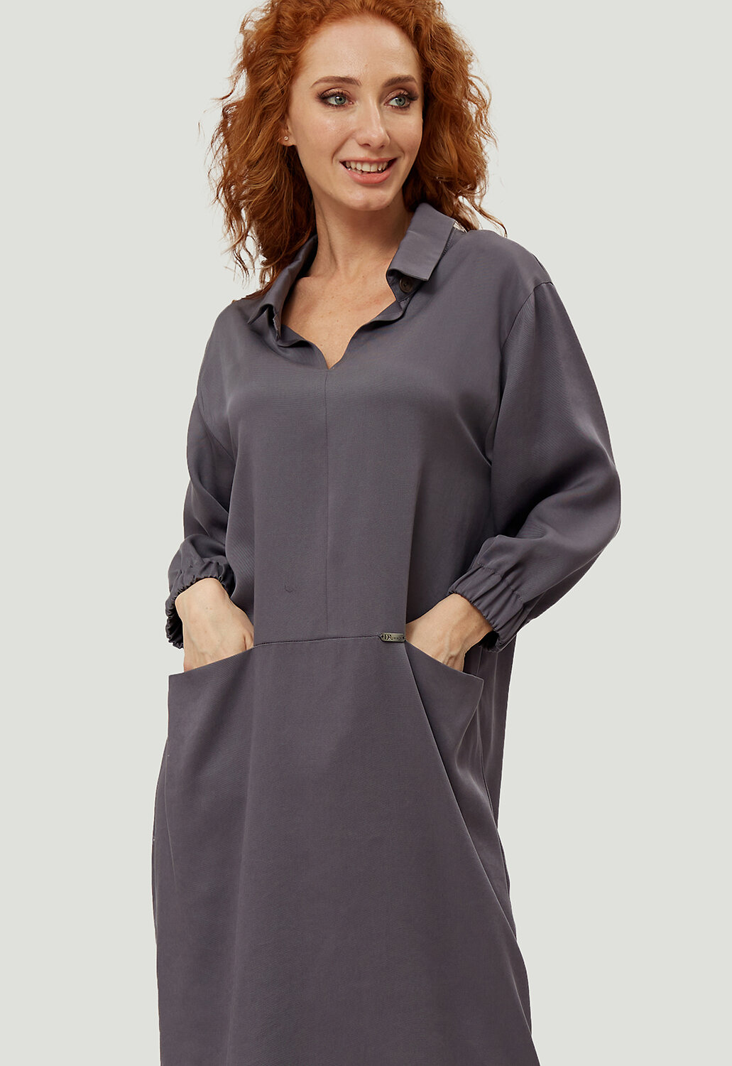 Стильное, универсальное платье в минималистическом кэжуал - стиле комфортной длины от российского производителя D’imma Fashion Studio из натуральной ткани - олицетворение женственности, привлекательности и уверенности. Модель с актуальным, отложным воротником на стойке с застежкой на пуговицу с навесной петлей. Расстегнув пуговицу, можно оформить V-образный вырез, визуально удлиняющий шею. Втачной рукав с цельнокроеной манжетой на резинке делает его интересным и модным. По переду горизонтальный рез ниже линии талии с цельнокроеными карманами придаст модели удобства и стиля. Данное платье свободного силуэта будет изумительно смотреться не только на моделях из дизайнерских коллекций, но и на корпулентных девушках. Можно дополнять яркими аксессуарами и менять образ под настроение. Модель создана для тех, кто любит быть индивидуальным и неповторимым.