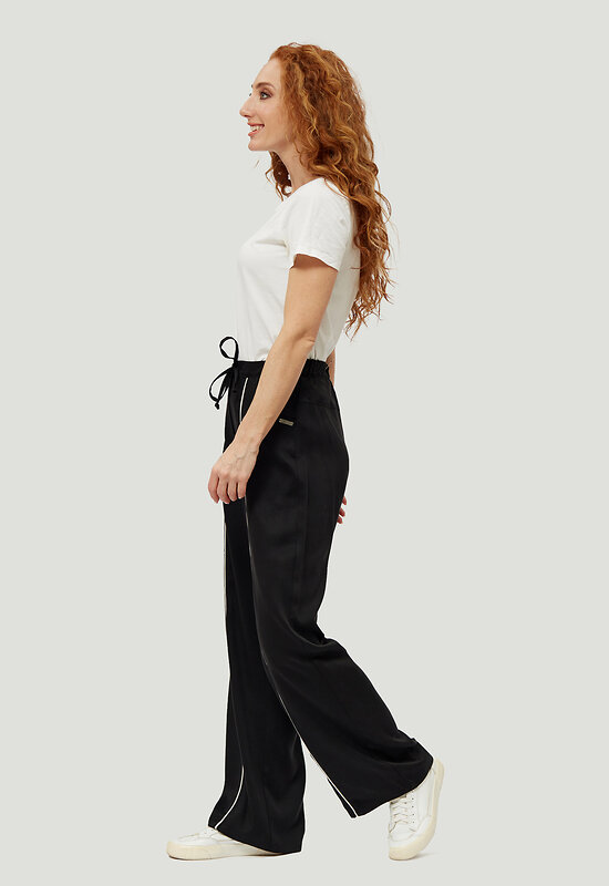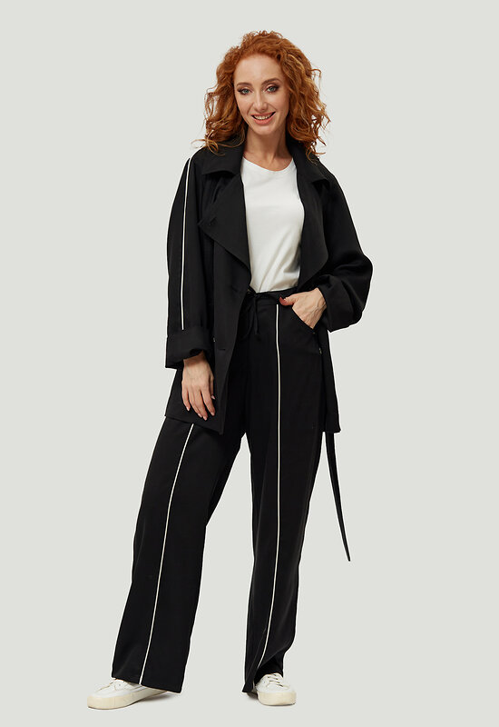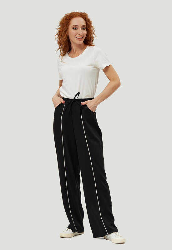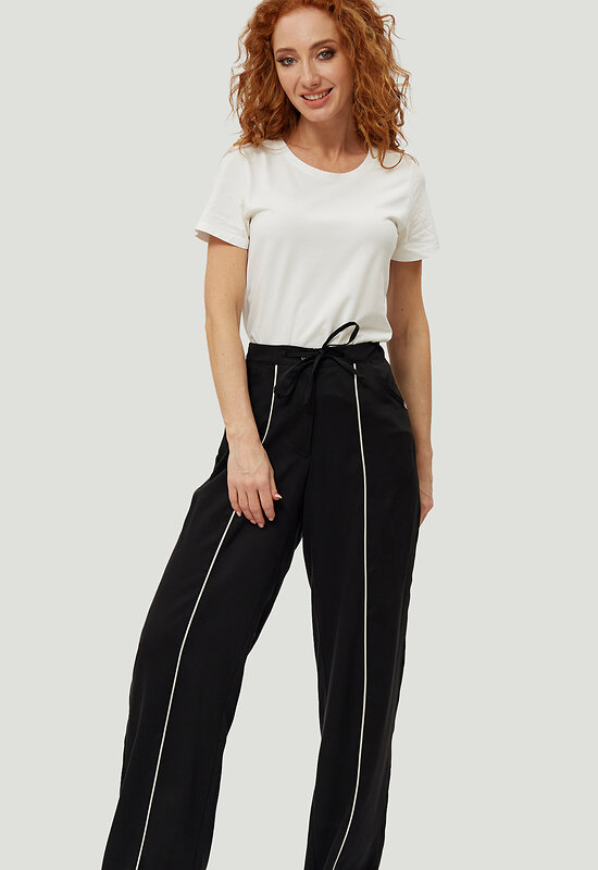 Модные, универсальные прямые брюки из натуральной ткани от российского производителя D’imma Fashion Studio - необходимая вещь в женском гардеробе, открывающая новые горизонты при создании образа. Фигурные карманы и контрастные канты посередине передних половинок брюк дополняют образ и создают комфорт. Пояс спереди на кулиске, позволяющей регулировать ширину пояса. Изделие с втачной кокеткой и поясом на резинке сзади. Модель создана для тех, кто любит быть индивидуальным и неповторимым. Брюки для женщины – палочка-выручалочка и универсальный предмет гардероба, который уместен и в будни, и в праздники.