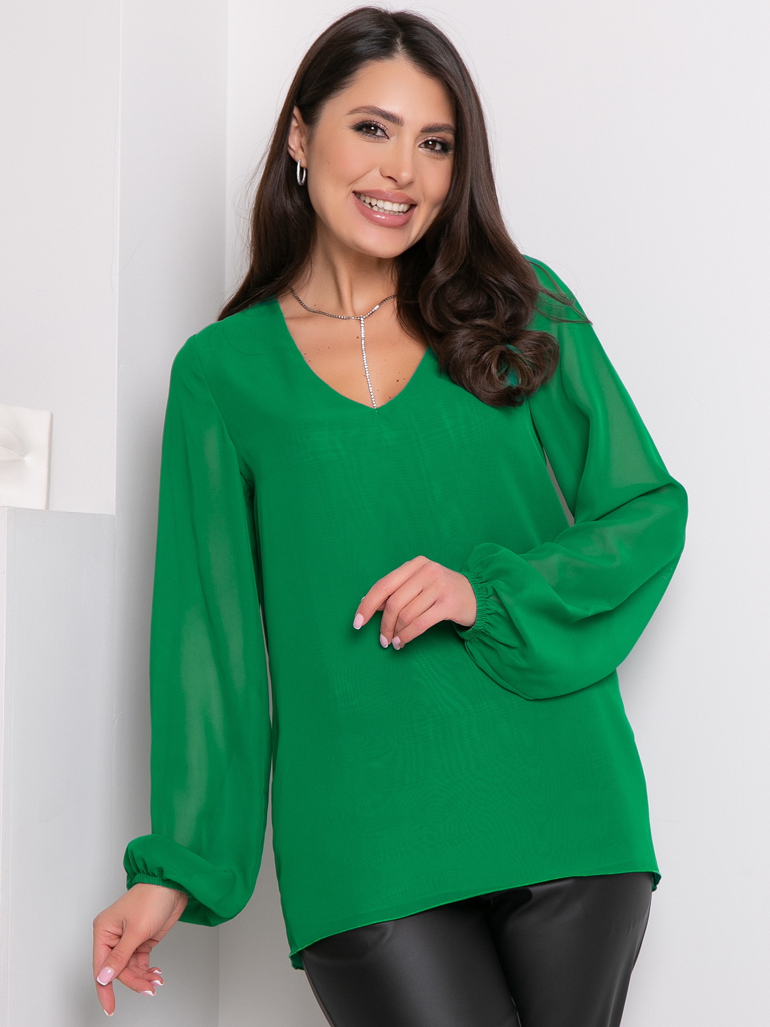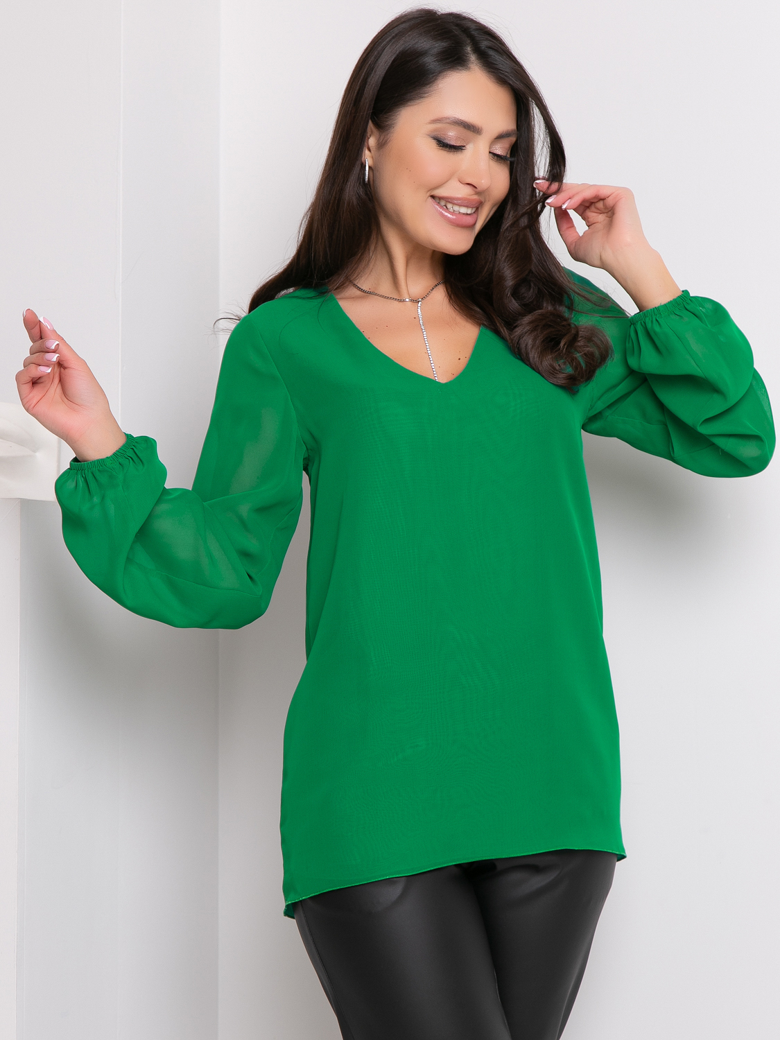 Яркие краски в новой коллекции блузок от Diolche! Блузка женская из шифона с длинным пышным рукавом, идеально впишется в ваш гардероб. Настоящая находка для модниц для создания делового образа, повседневного или праздничного. Оригинальный крой блузки сочетает тренды и комфорт: V-образный вырез,свободный прямой силуэт и объемные рукава. Стильную блузку можно носить как с классическими брюками и юбками, так и с джинсами или под сарафан. Перед и спинка из двух слоев шифона, не просвечивает. Втачные длинные рукава с низу собраны на резинку.