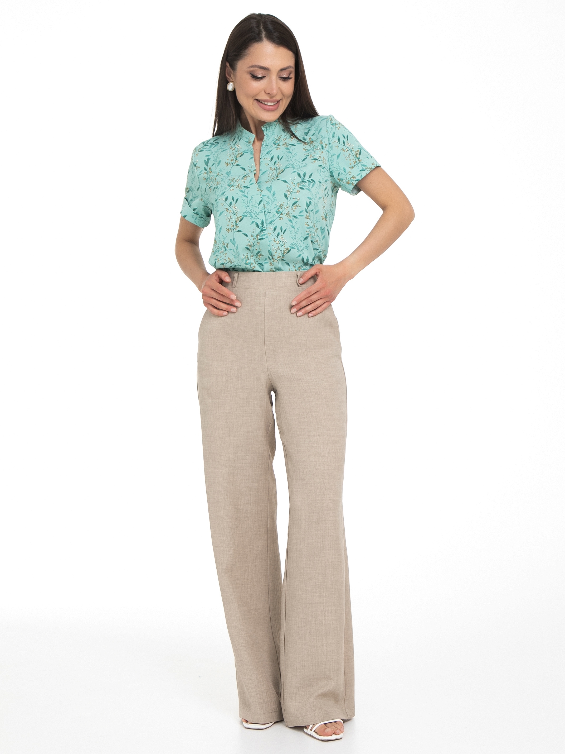 Блузка  продуманного и универсального фасона, идеально подходящего под любой низ. Блуза летних расцветок, идеально впишется в любой гардероб: для создания , повседневного или праздничного. Можно носить как с классическими брюками и юбками, так и с джинсами или под сарафан. Прекрасно смотрится как в заправленном состоянии, так и на выпуск. Благодаря легкой ткани блузка обеспечивает идеальный  комфорт в летний зной, не мнется и обладает износостойкостью, Ткань легкая и не просвечивает. Воротник классический на стойке, рукав короткий   с отворотом.