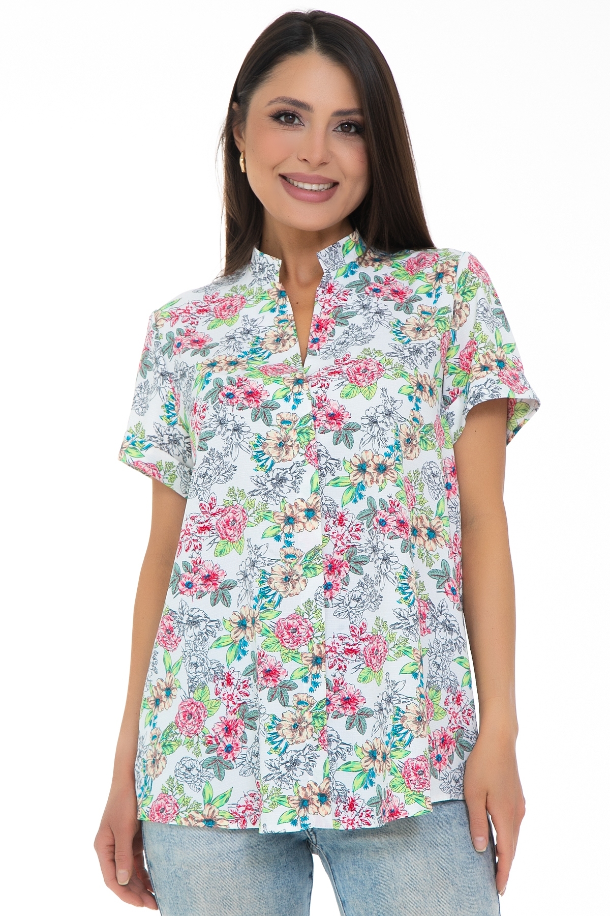 Блузка продуманного и универсального фасона, идеально подходящего под любой низ. Блуза летних расцветок, идеально впишется в любой гардероб: для создания , повседневного или праздничного. Можно носить как с классическими брюками и юбками, так и с джинсами или под сарафан. Прекрасно смотрится как в заправленном состоянии, так и на выпуск. Благодаря вискозной ткани блузка обеспечивает идеальный комфорт в летний зной, не мнется и обладает износостойкостью, Ткань легкая и не просвечивает, рукав короткий с отворотом.