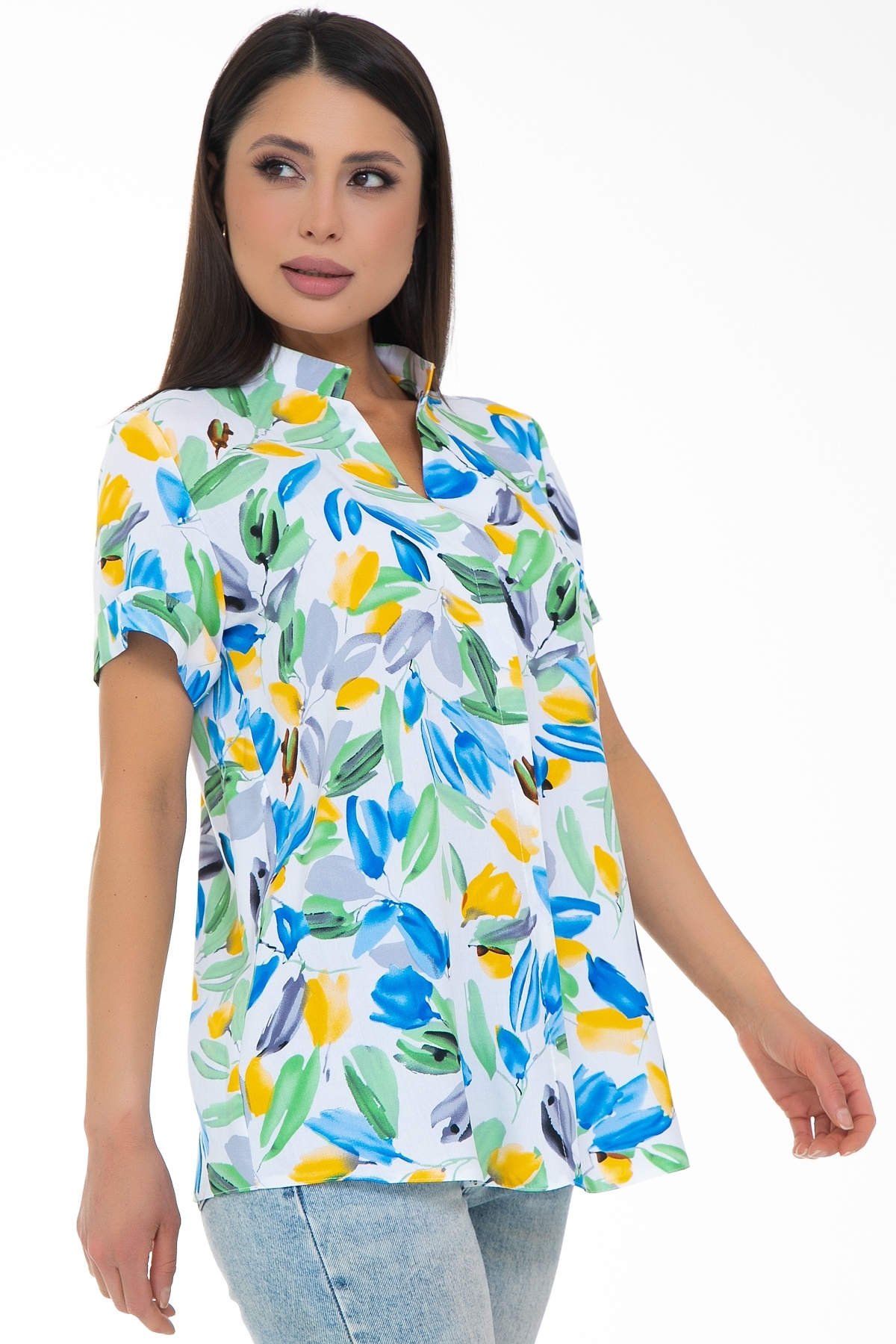 Блузка продуманного и универсального фасона, идеально подходящего под любой низ. Блуза летних расцветок, идеально впишется в любой гардероб: для создания , повседневного или праздничного. Можно носить как с классическими брюками и юбками, так и с джинсами или под сарафан. Прекрасно смотрится как в заправленном состоянии, так и на выпуск. Благодаря вискозной ткани блузка обеспечивает идеальный комфорт в летний зной, не мнется и обладает износостойкостью, Ткань легкая и не просвечивает, рукав короткий с отворотом.