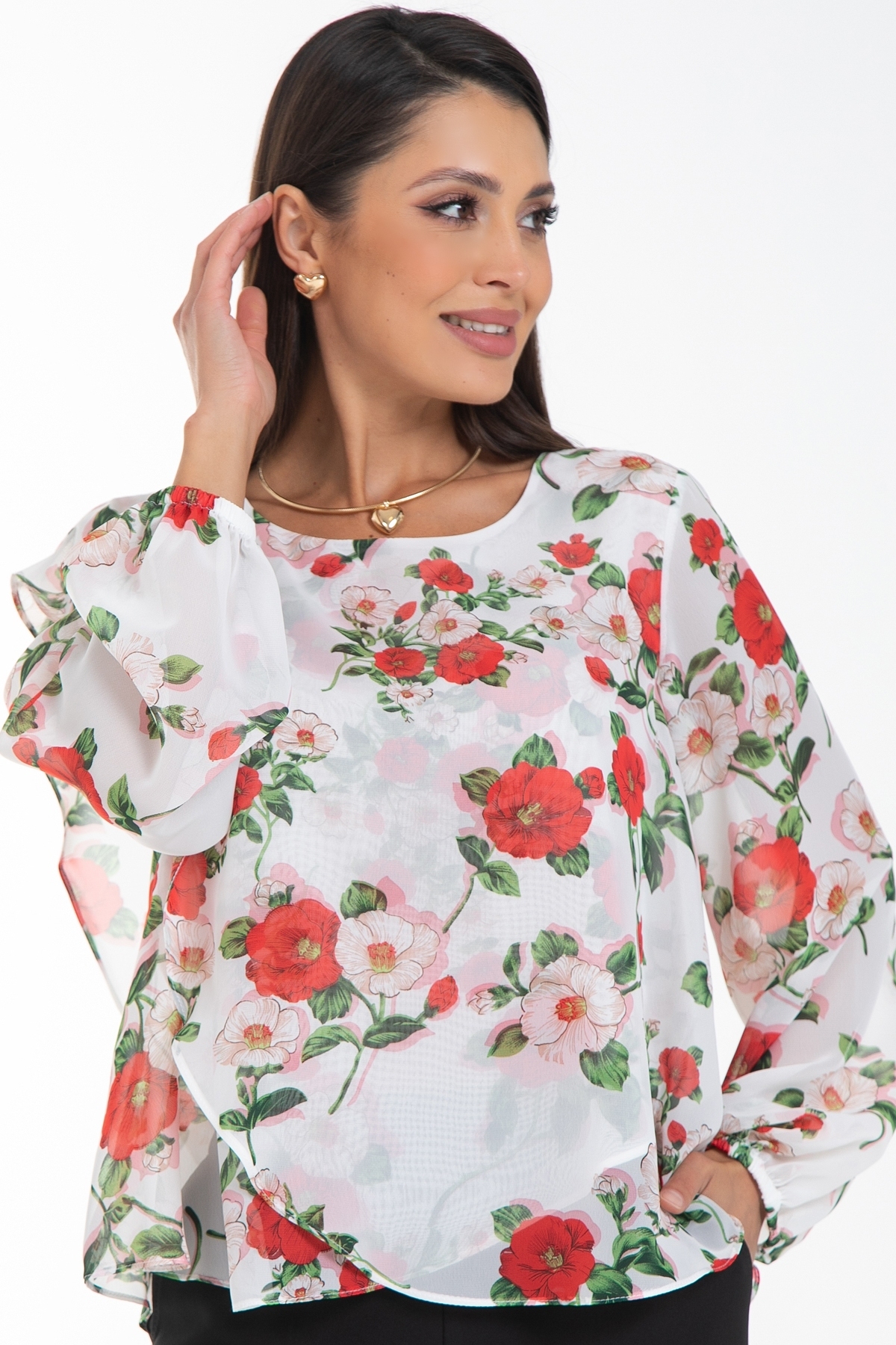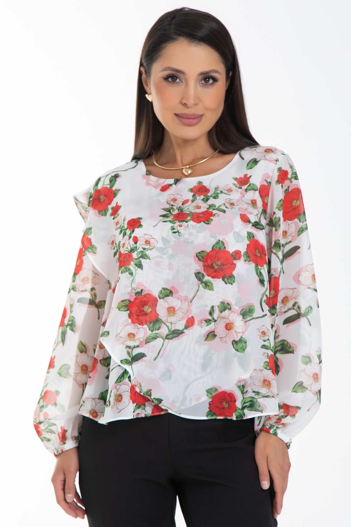 Бестселлер! Дизайнерская шифоновая блузка Diolche - идеальный выбор для создания стильного и запоминающегося образа. Ассиметричный крой придают блузке изысканность и неповторимость. Благодаря своему универсальному дизайну и качеству исполнения, эта блузка-туника с длинными пышными рукавами станет вашим надежным помощником в создании идеального образа и скроет все недостатки фигуры. Благодаря многослойности ,блуза не просвечивает . В обработке срезов использован люксовый способ подгибки "московский шов". Эта блуза уместна везде - в офисе, на прогулке или празднике. Можно носить как с классическими брюками и юбками, так и с джинсами. Прекрасно смотрится как в заправленном состоянии, так и на выпуск.
