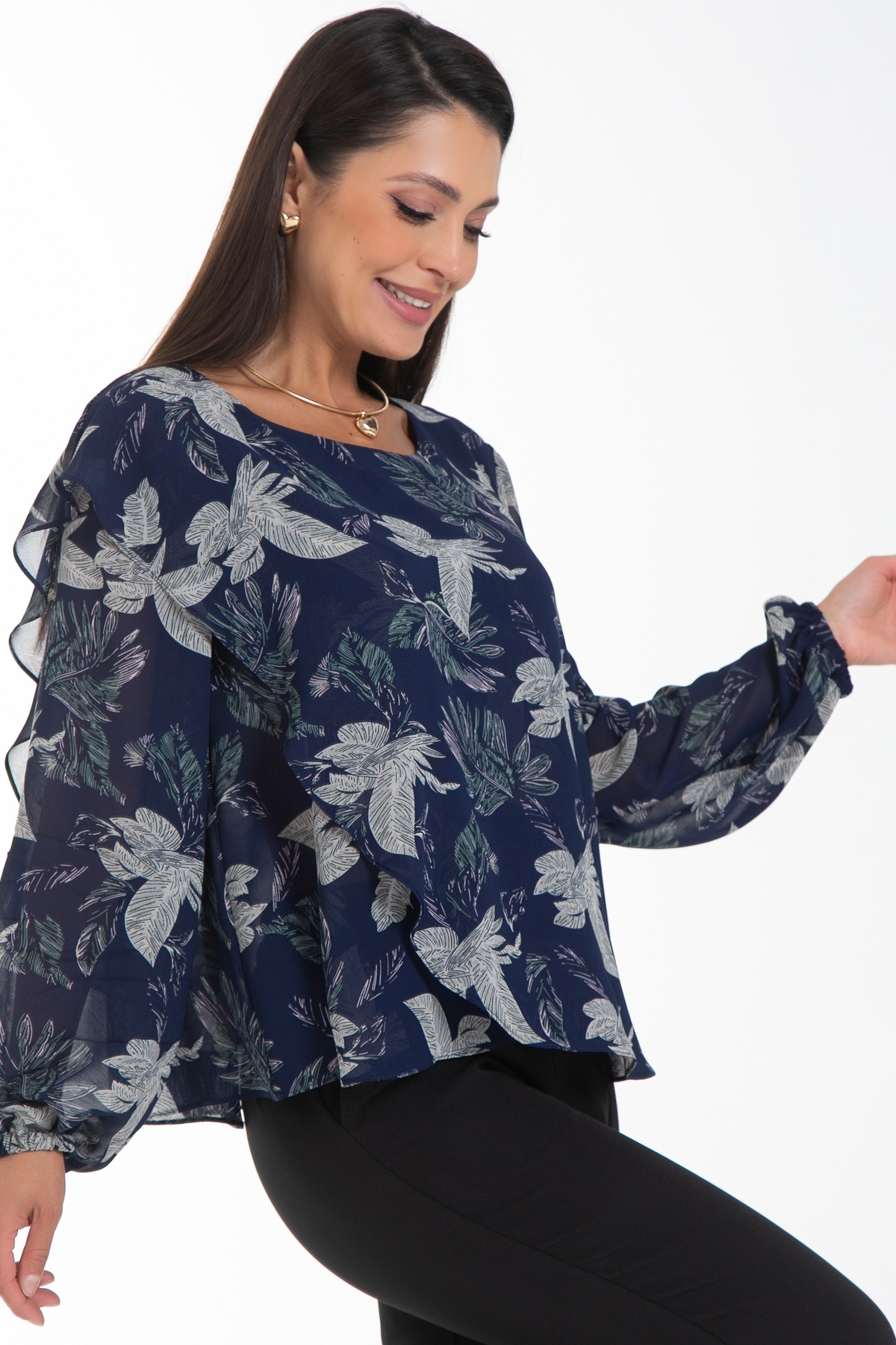 Бестселлер! Дизайнерская шифоновая блузка Diolche - идеальный выбор для создания стильного и запоминающегося образа. Ассиметричный крой придают блузке изысканность и неповторимость. Благодаря своему универсальному дизайну и качеству исполнения, эта блузка-туника с длинными пышными рукавами станет вашим надежным помощником в создании идеального образа и скроет все недостатки фигуры. Благодаря многослойности ,блуза не просвечивает . В обработке срезов использован люксовый способ подгибки "московский шов". Эта блуза уместна везде - в офисе, на прогулке или празднике. Можно носить как с классическими брюками и юбками, так и с джинсами. Прекрасно смотрится как в заправленном состоянии, так и на выпуск.