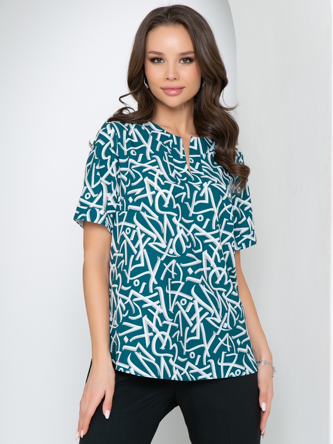 Блуза свободного прилегания. Спереди по горловине двойная фигурная кокетка, сзади горловина обработана обтачкой. По переду сделаны боковые вытачки на грудь. Рукава короткие. с манжетом, подогнутым на верх. Спинка цельнокроеная с двумя вытачками. Универсальная вещь, отлично сочетается с юбкой, брюками, джинсами