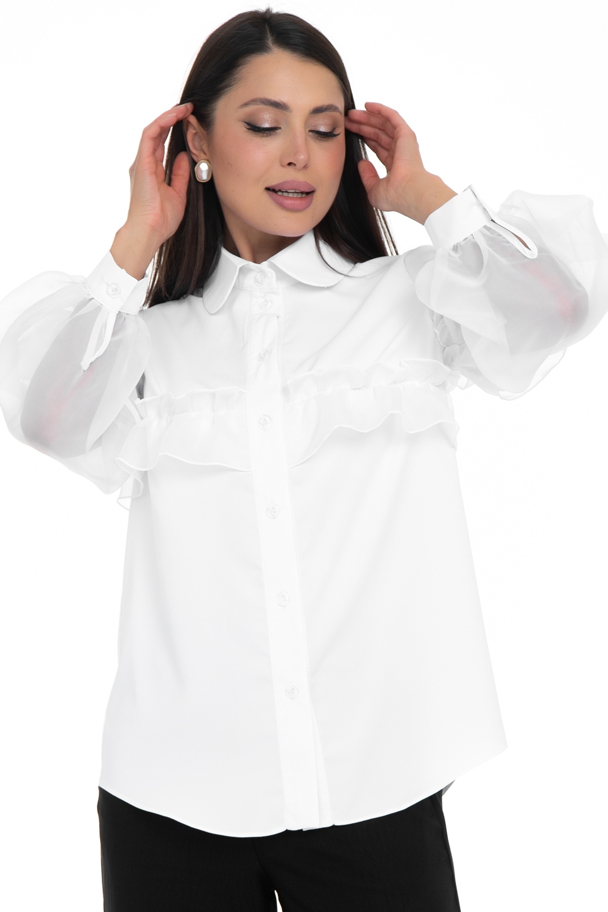 Блузка – это универсальный элемент гардероба, который может быть как строгим и деловым, так и легким и романтичным. А если добавить к ней немного волшебства, например, в виде рукавов, украшенных органзой, то она мгновенно превращается в нарядную и элегантную вещь, способную украсить любой образ.