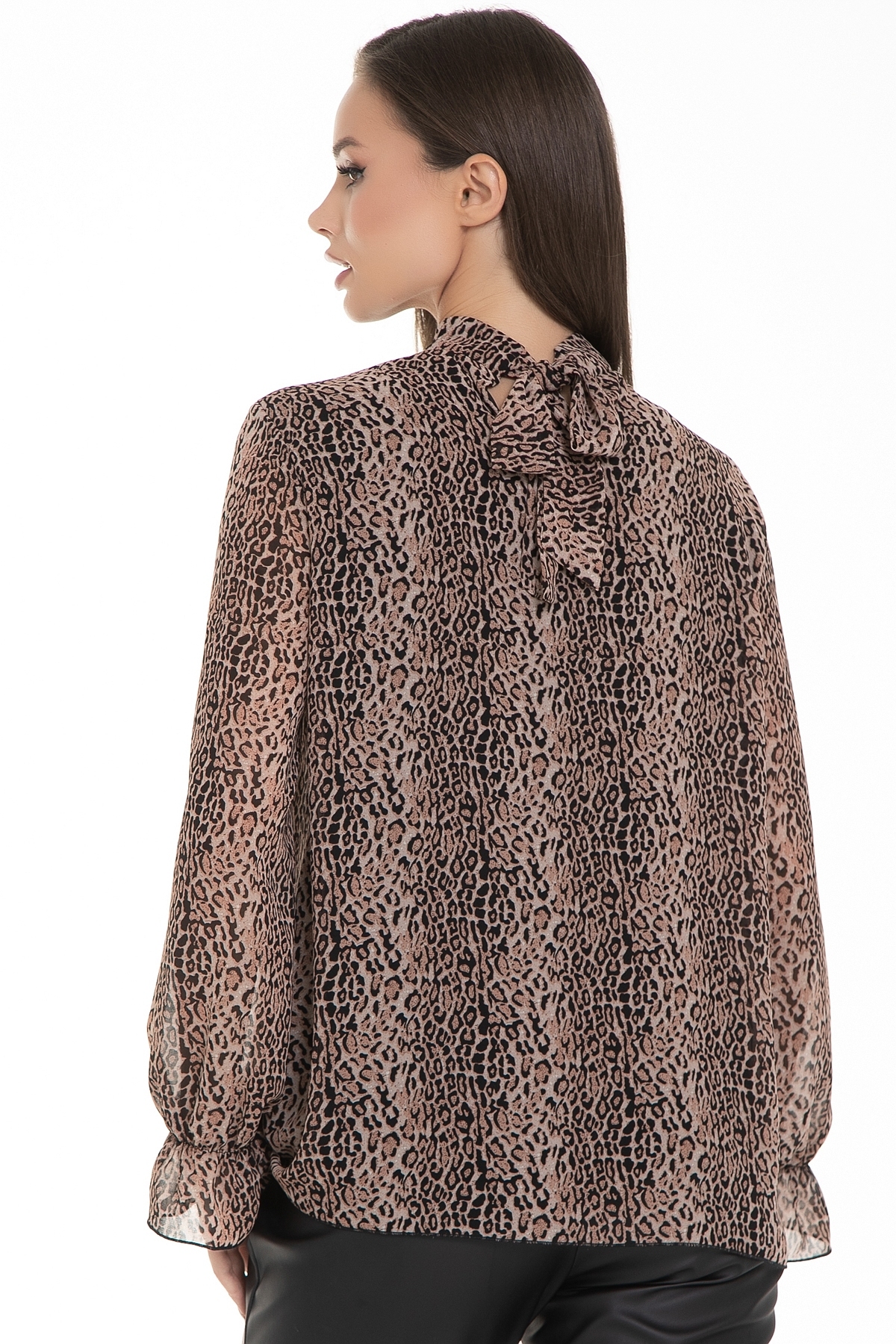 Шифоновая блузка с авторским принтом – настоящая находка для всех модниц! Утонченный благородный дизайн делает ее идеальным выбором для любого особого случая. Легкая, с изящным воротником стойкой, широкие объемные пышные рукава- все это превращает повседневный образ в необычный и оригинальный. В этой красивой блузе из шифона вы всегда будете выглядеть потрясающе! Прямая свободная блуза с идеальной посадкой на любую фигуру, ее легко сочетать с брюками, джинсами или юбкой, надевать под пиджак или жакет. Воротник стойка сзади переходит в завязки с длинными концами, из которых получается великолепный бант. Можно сделать свободный узел и оставить ленты, либо перекинуть их вперед, создав тем самым новый образ. Рукав длинный, на резинке с красивой рюшей по низу.