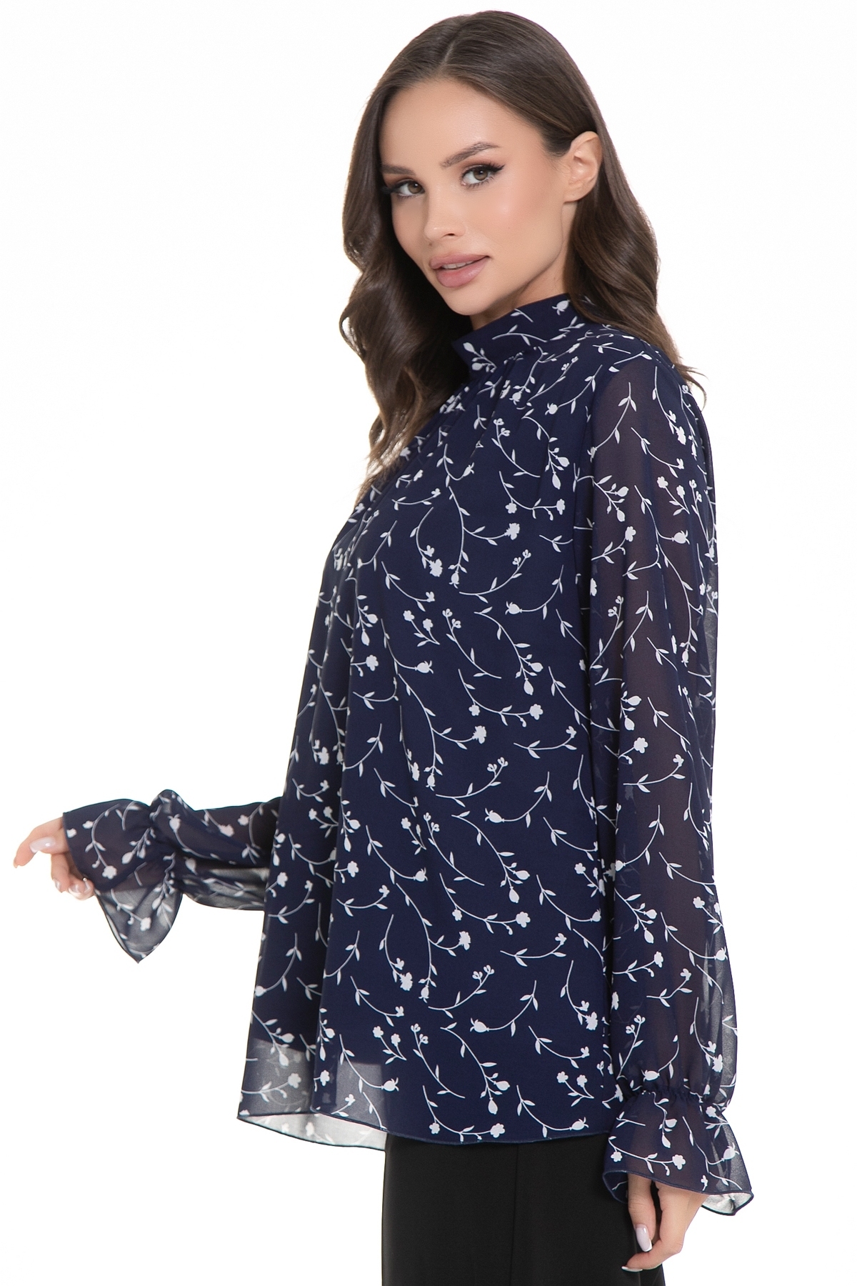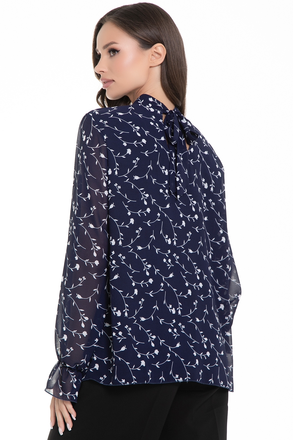 Шифоновая блузка с авторским принтом – настоящая находка для всех модниц! Утонченный благородный дизайн делает ее идеальным выбором для любого особого случая. Легкая, с изящным воротником стойкой, широкие объемные пышные рукава- все это превращает повседневный образ в необычный и оригинальный. В этой красивой блузе из шифона вы всегда будете выглядеть потрясающе! Прямая свободная блуза с идеальной посадкой на любую фигуру, ее легко сочетать с брюками, джинсами или юбкой, надевать под пиджак или жакет. Воротник стойка сзади переходит в завязки с длинными концами, из которых получается великолепный бант. Можно сделать свободный узел и оставить ленты, либо перекинуть их вперед, создав тем самым новый образ. Рукав длинный, на резинке с красивой рюшей по низу.
