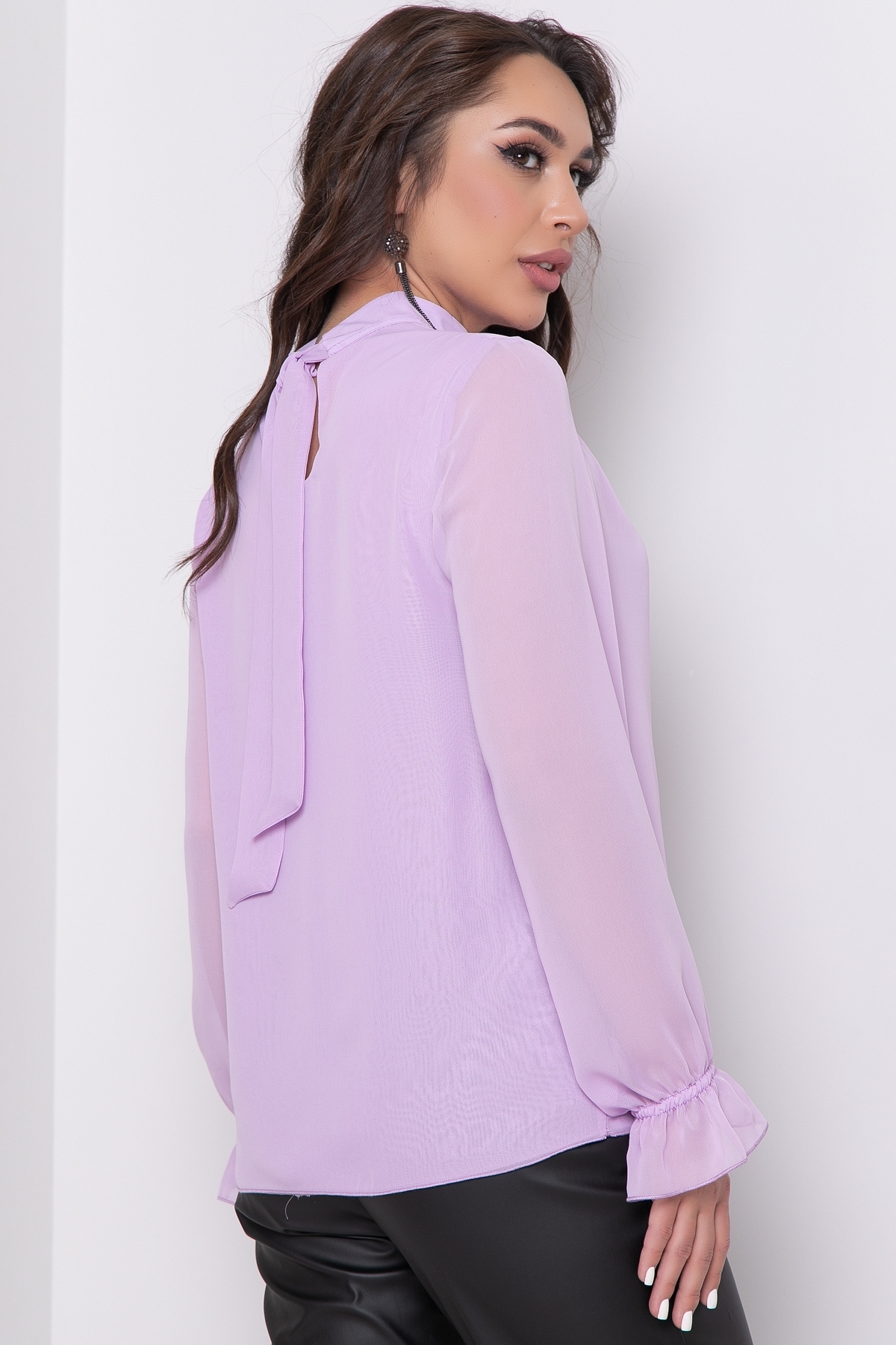 Восхитительная блузка из воздушного шифона с объемными широкими рукавами выглядит изысканно и стильно. Блуза прямого свободного фасона подойдет как для создания вечернего образа, так и для офисного стиля, ее легко сочетать с брюками, джинсами или юбкой, надевать под пиджак или жакет. Перед и спинка из двух слоев ткани. Воротник стойка сзади переходит в завязки с длинными концами, из которых получается великолепный бант. Можно сделать свободный узел и оставить ленты, либо перекинуть их вперед, создав тем самым новый образ. Придумывайте, творите и восхищайте!