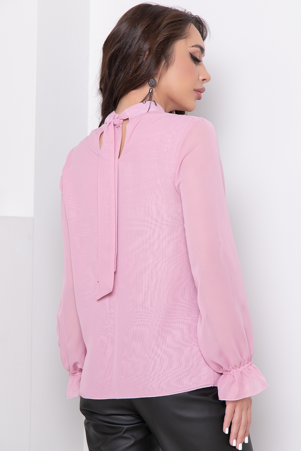 Восхитительная блузка из воздушного шифона с объемными широкими рукавами выглядит изысканно и стильно. Блуза прямого свободного фасона подойдет как для создания вечернего образа, так и для офисного стиля, ее легко сочетать с брюками, джинсами или юбкой, надевать под пиджак или жакет. Перед и спинка из двух слоев ткани. Воротник стойка сзади переходит в завязки с длинными концами, из которых получается великолепный бант. Можно сделать свободный узел и оставить ленты, либо перекинуть их вперед, создав тем самым новый образ. Придумывайте, творите и восхищайте!