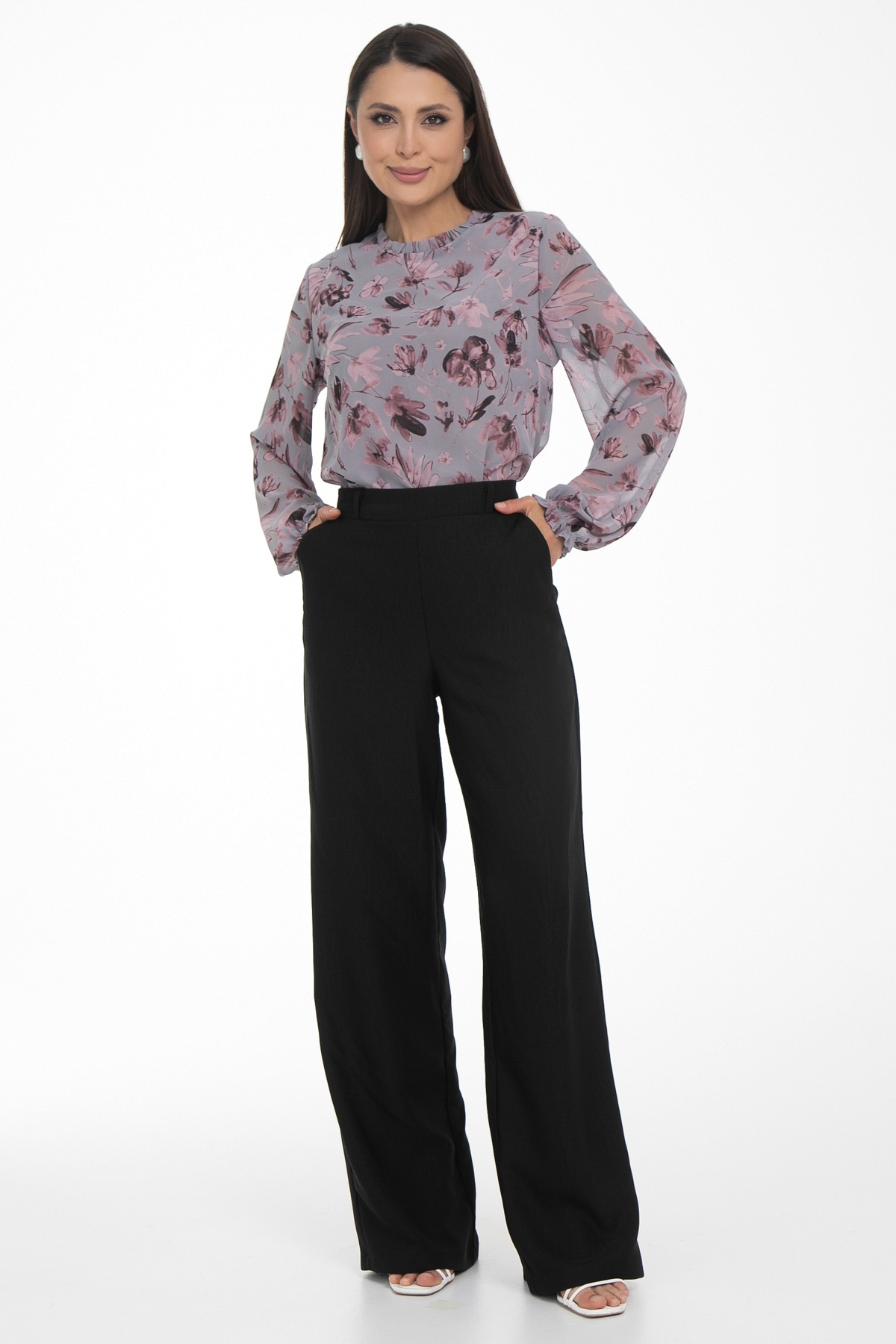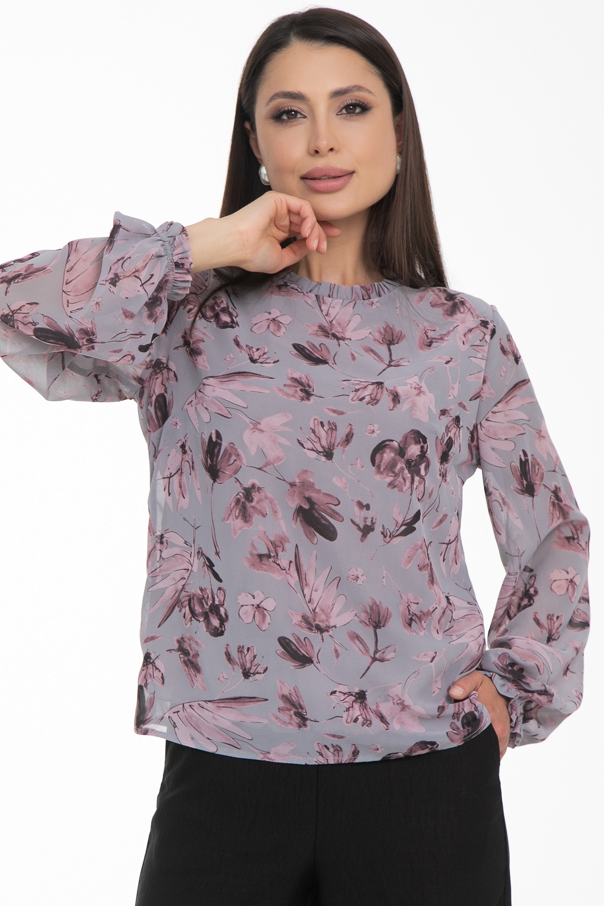 Очаровательная свободная шифоновая блузка, подчеркивающее женственность - отличное решение на каждый день или на праздник для современной стильной женщины. Шикарная модель с объемными длинными рукавами выполнена из высококачественного шифона. Круглая горловина оформлена рюшей с застежкой на пуговицу на спине.Нежная блузка из шифона на трикотажном подкладе, по переду сделаны вытачки на грудь, рукава втачные пышные, длинные, снизу собраны на резинку.