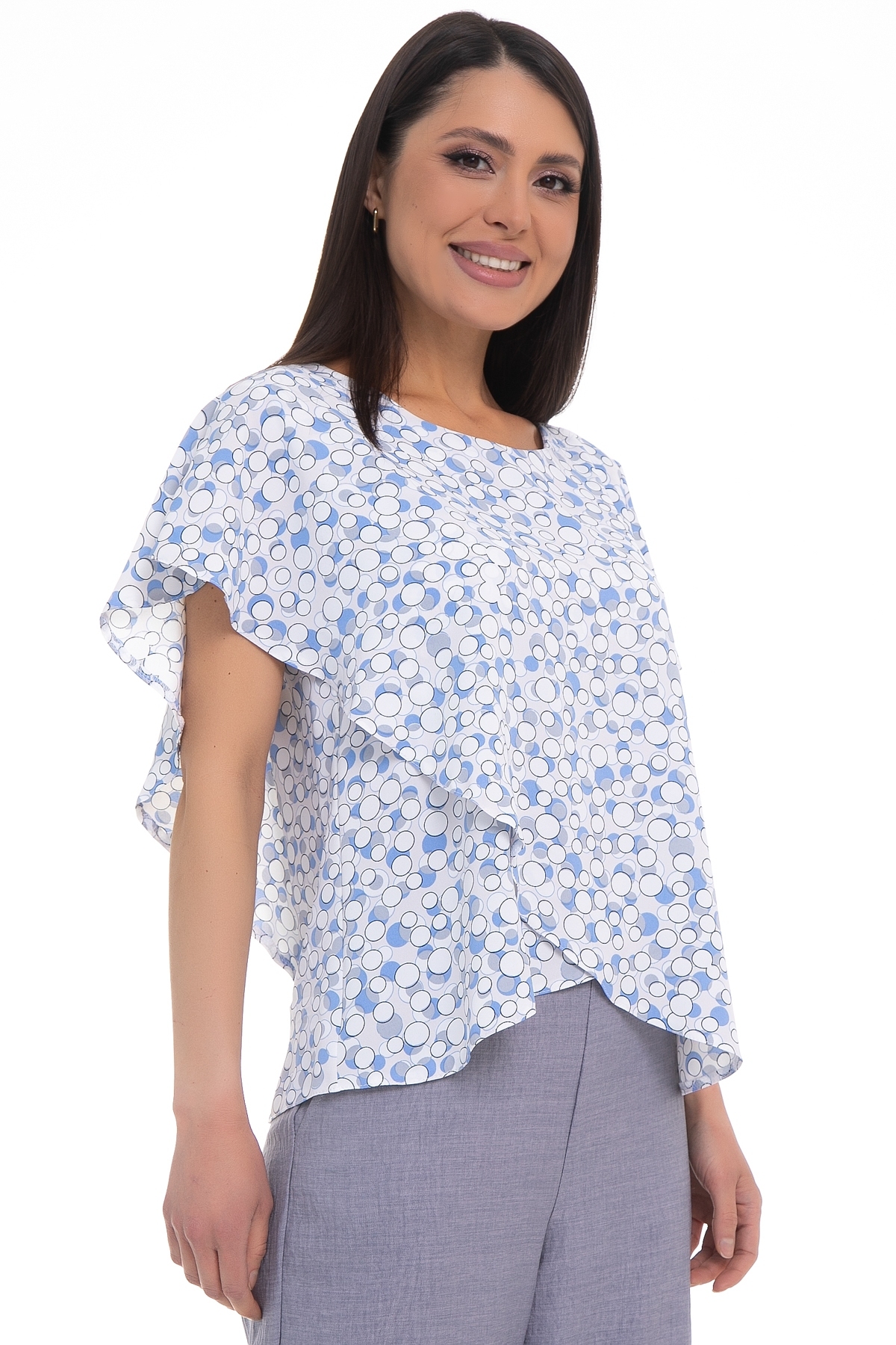 Бестселлер! Легкая блузка Diolche - идеальный выбор для создания стильного и запоминающегося образа. Рукав крылышко и ассиметричный крой придают блузке изысканность и неповторимость. Благодаря своему универсальному дизайну и качеству исполнения, эта блузка-туника с коротким рукавом станет вашим надежным помощником в создании идеального образа и скроет все недостатки фигуры. Эта блуза уместна везде - в офисе, на прогулке или празднике. Можно носить как с классическими брюками и юбками, так и с джинсами. Прекрасно смотрится как в заправленном состоянии, так и на выпуск.