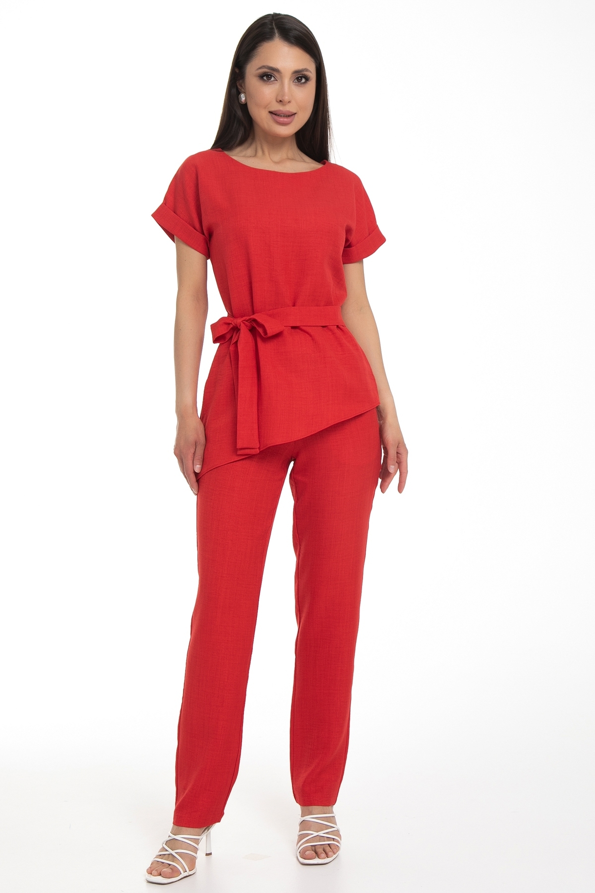 Топ продаж! Оригинальный брючный костюм выполнен в современном прочтении, с использованием базовых цветов. Комплект состоит из классических брюк с резинкой на талии, отлично подчеркивающих фигуру, и блузы прямого кроя с цельнокроенными рукавами и ассиметричным низом. Преимущество комплекта в том, что Вы сможете самостоятельно носить как блузу, комбинируя её с другими вещами, так и брюки. Пояс из основной ткани входит в комплект и позволяет при желании подчеркнуть линию талии.Модель выполнена из лёгкой вискозной ткани высокого качества.