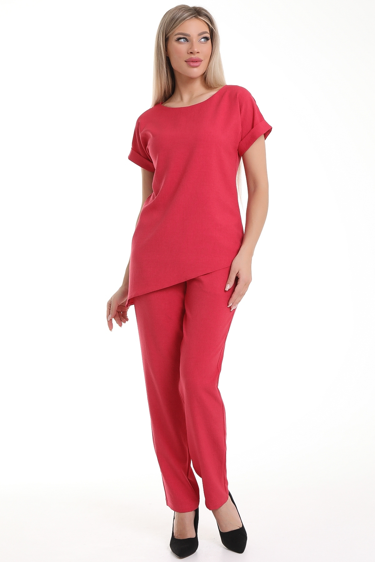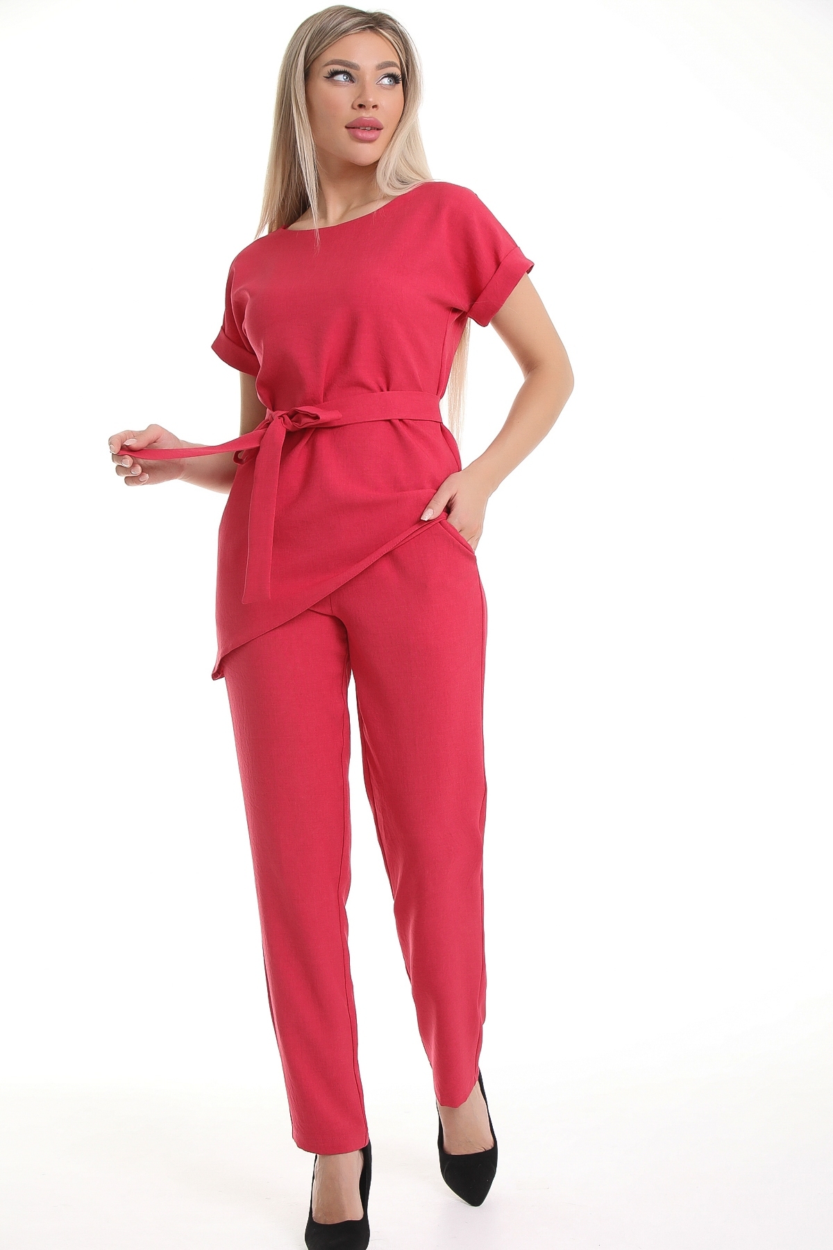 Топ продаж! Оригинальный брючный костюм выполнен в современном прочтении, с использованием базовых цветов. Комплект состоит из классических брюк с резинкой на талии, отлично подчеркивающих фигуру, и блузы прямого кроя с цельнокроеными рукавами и ассиметричным низом. Преимущество комплекта в том, что Вы сможете самостоятельно носить как блузу, комбинируя её с другими вещами, так и брюки. Пояс из основной ткани входит в комплект и позволяет при желании подчеркнуть линию талии.