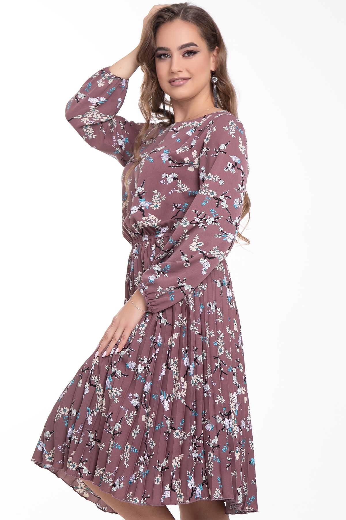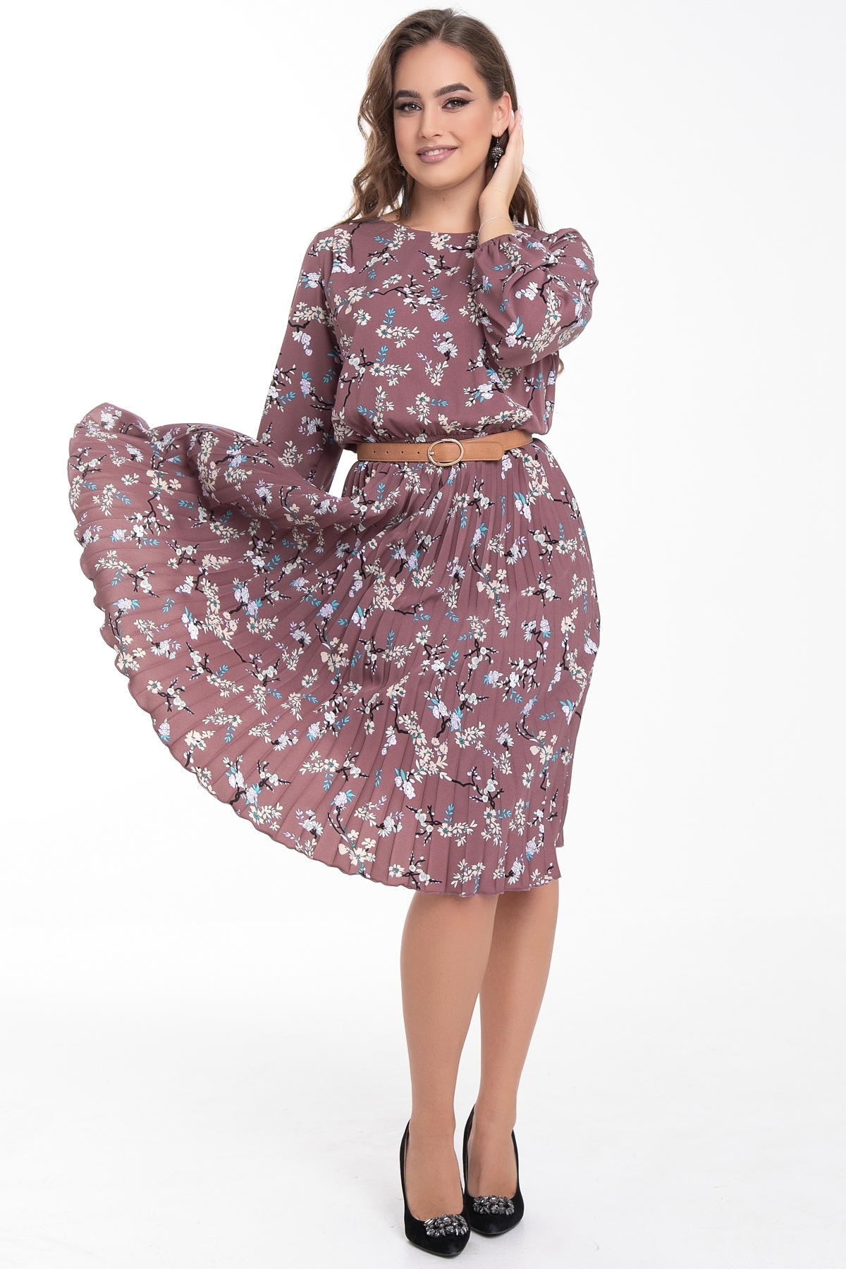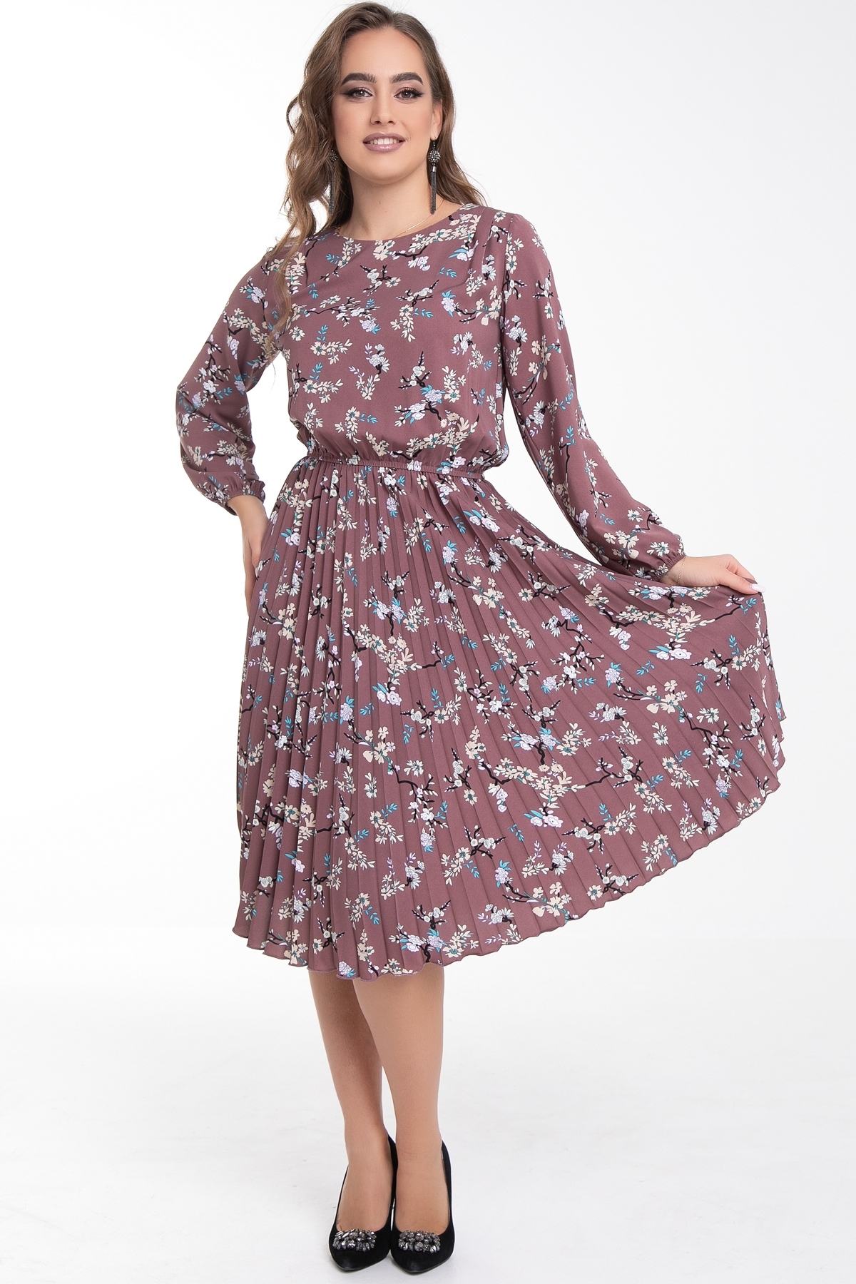 Элегантное платье свободного облегания с невероятно популярной в этом сезоне юбкой гофре. Отлично подойдет на любую фигуру. Платье отрезное по талии и по шву собрано на резинку. Горловина обработана обтачкой. От плеча на грудь заложены по две складки с каждой стороны. Длинные объемные рукава собраны на резинку.