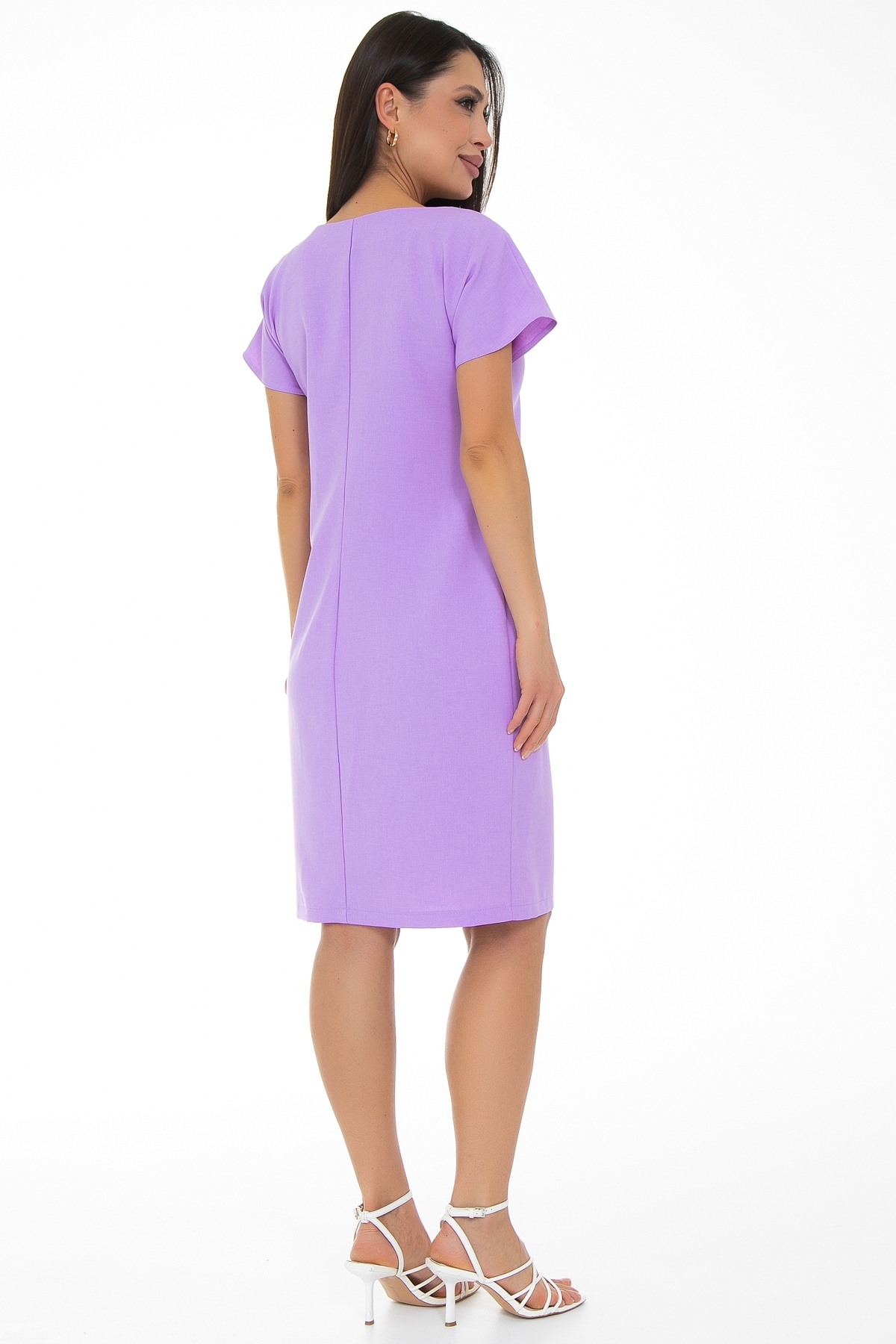 Стильное платье футляр с цельнокроеными рукавами и пикантным разрезом, полуприлегающего фасона сделает фигуру стройнее. Спинка из двух частей. Перед имеет диагональную отрезную часть и разрез.Вырез горловины обработан внутренней обтачкой. Модель выполнена из вискозной ткани "под лен".