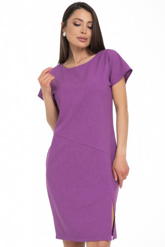 Стильное платье футляр с цельнокроеными рукавами и пикантным разрезом, полуприлегающего фасона сделает фигуру стройнее. Спинка из двух частей. Перед имеет диагональную отрезную часть и разрез.Вырез горловины обработан внутренней обтачкой. Модель выполнена из вискозной ткани "под лен".