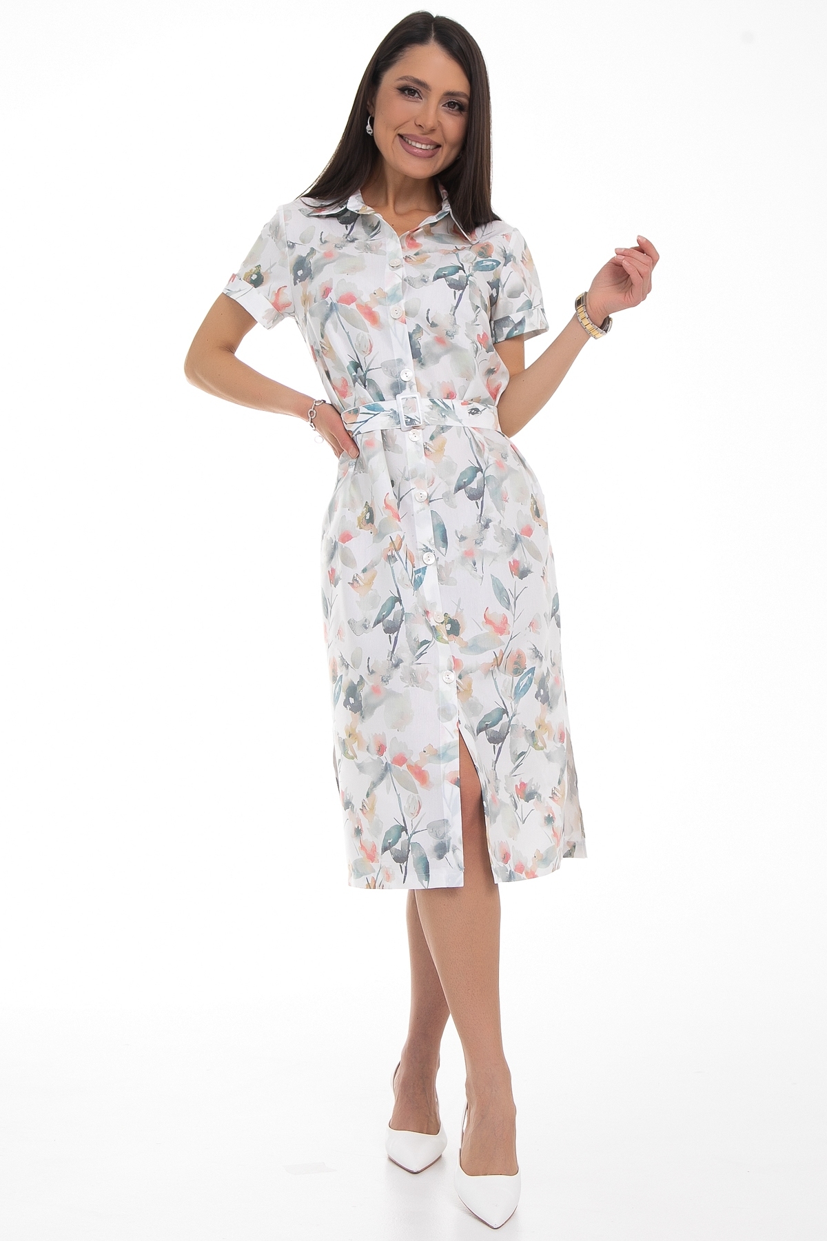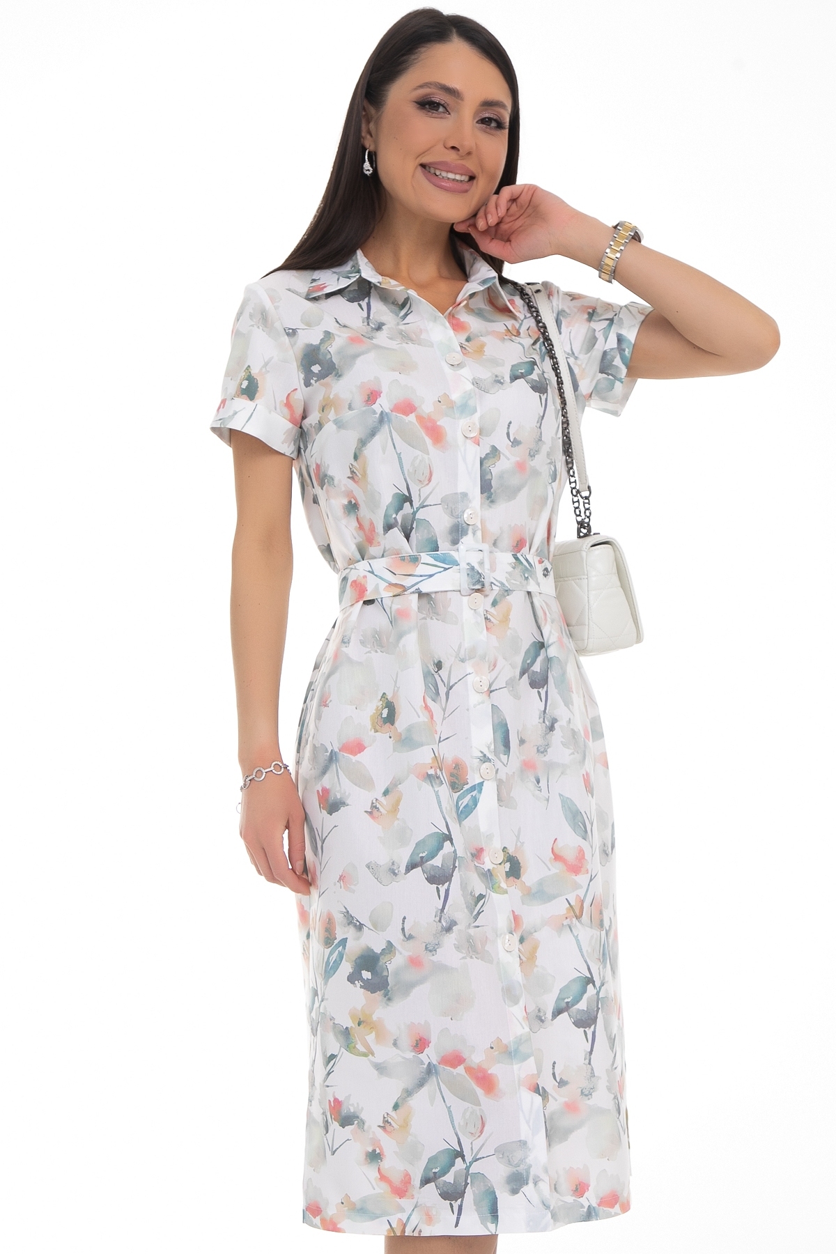 Прямое современное платье-рубашка с идеальной посадкой от дизайнеров Diolche. Легкое и стильное платье из вискозной ткани- отличный вариант для создания комфортных и модных образов. Благодаря авторскому принту и высокому качеству материала, создается неповторимый образ, который запомнится надолго. Натуральная ткань высокого качества дарит ощущение комфорта в жаркие летние дни. Платье застёгивается спереди на петли-пуговицы. Воротничок на стойке, по переду сделаны вытачки на грудь. По спинке сделаны две вытачки приталивания. Рукав короткий, втачной, с манжетом. В области талии и бёдер свободного прилегания. Платье дополняется поясом из основной ткани с красивой пряжкой.