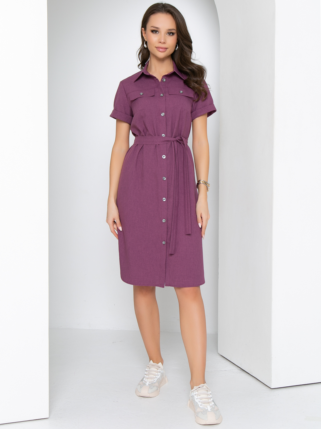 Платье удивительного цвета, который позволяет сочетать себя с самыми интересными оттенками. Экспериментируйте, наслаждайтесь. Платье-рубашка из вискозной ткани дарит высший уровень комфорта. Воротничок на стойке, по переду сделаны вытачки на грудь. Платье застёгивается спереди на петли-пуговицы, декорировано клапанами с пуговичкой. По спинке сделаны две вытачки приталивания. Рукав втачной, короткий, с манжетом. В области талии и бёдер свободного прилегания. Дополняется поясом из основной ткани.