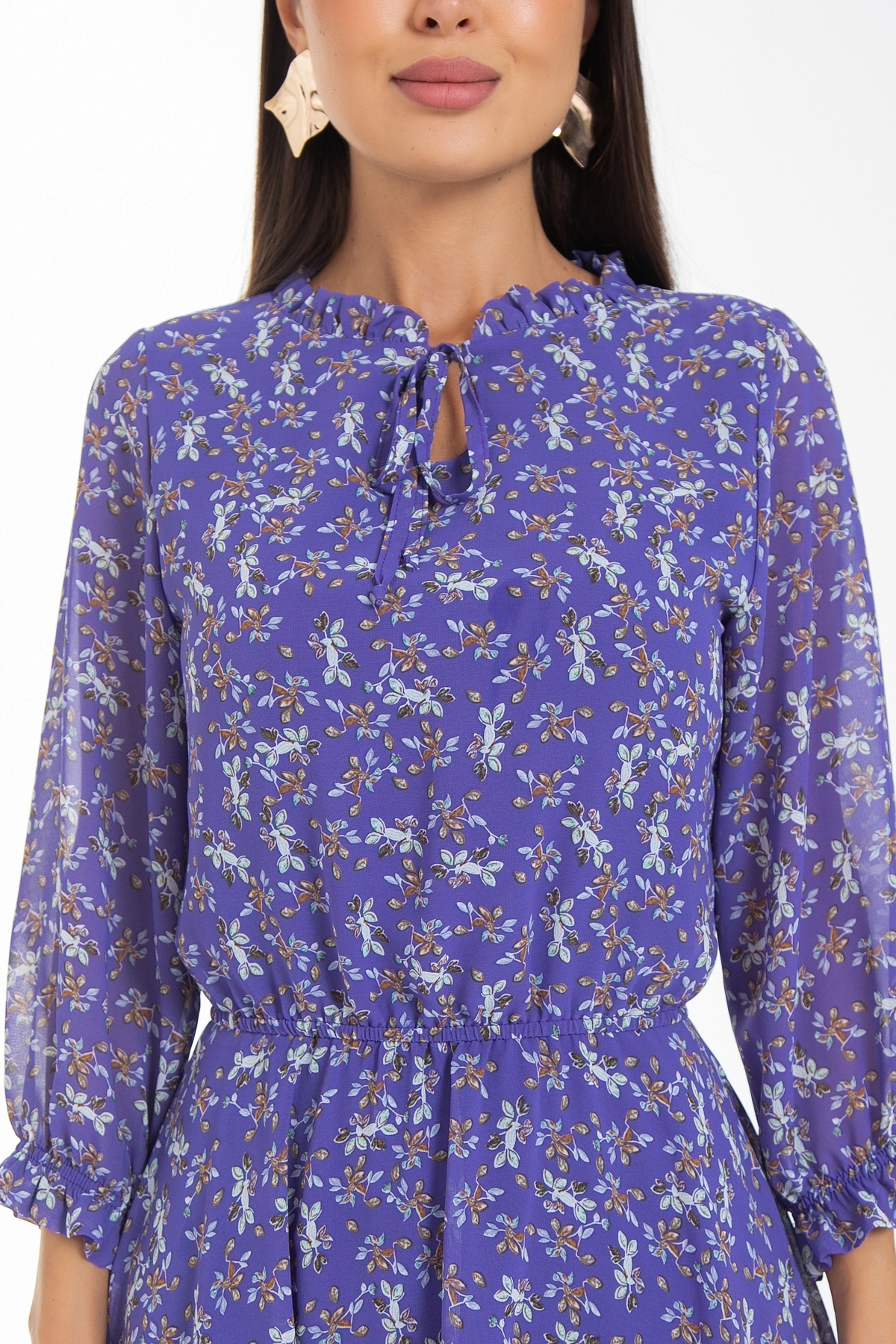 Летящее шифоновое платье подчёркивает достоинства вашей фигуры, делает Ваш образ женственным и нежным. Юбка платья полусолнце отрезная по линии талии. Полупрозрачные втачные рукава длиной 3/4 с низу подогнуты и сосборены на резинку. Платье с подкладом,притачным по горловине и пройме.По талии платье присборено на шпульную резину. Модель выполнена из шифона и трикотажного подклада.