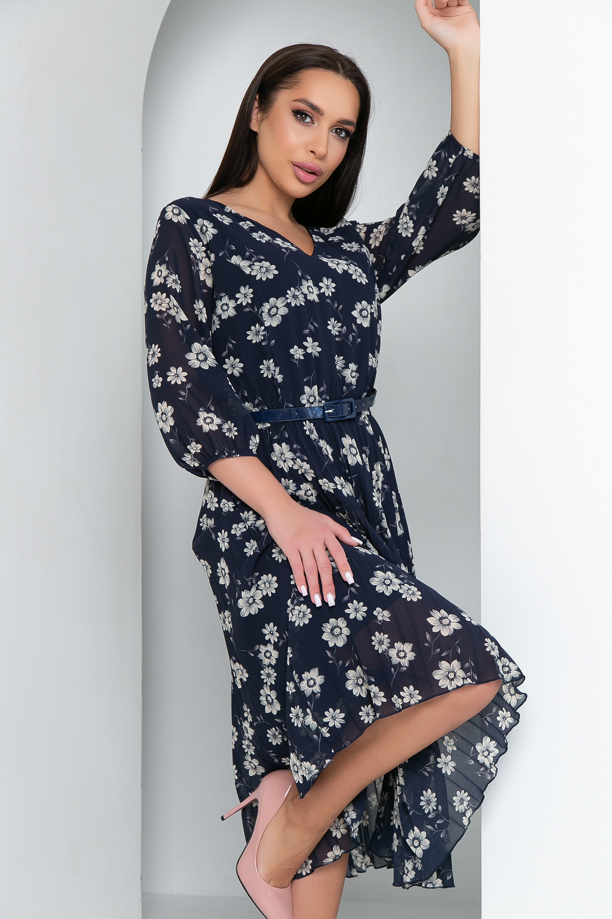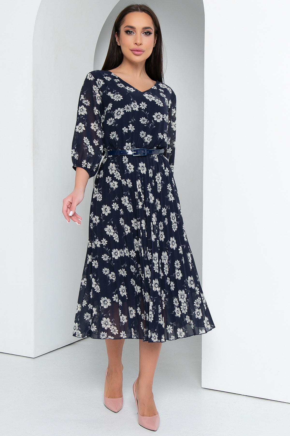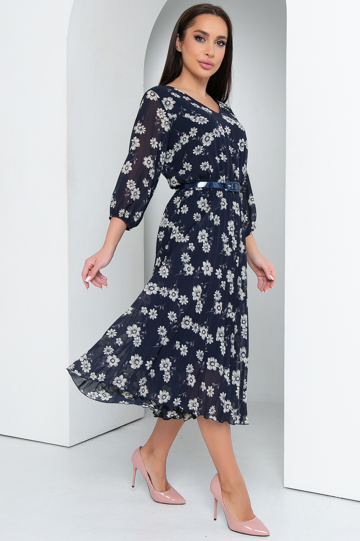 Сияйте вместе с Diolche! Представляем шикарное платье из легкого воздушного шифона с юбкой гофре. Актуальный цветочный принт подойдет женщинам и девушкам любого возраста. Свободный фасон позволит чувствовать себя комфортно в течении дня. Шифоновое платье модной длины миди отлично сядет на любую фигуру, зрительно стройнит и вытягивает силуэт. Платье имеет идеальную посадку благодаря индивидуальной корректировки длины за счет мягкой комфортной резинки на талии. Рукав длиной 3/4 на резинке снизу, благодаря которой можно свободно регулировать высоту рукава. V - образный вырез горловины обтачен подкладом.