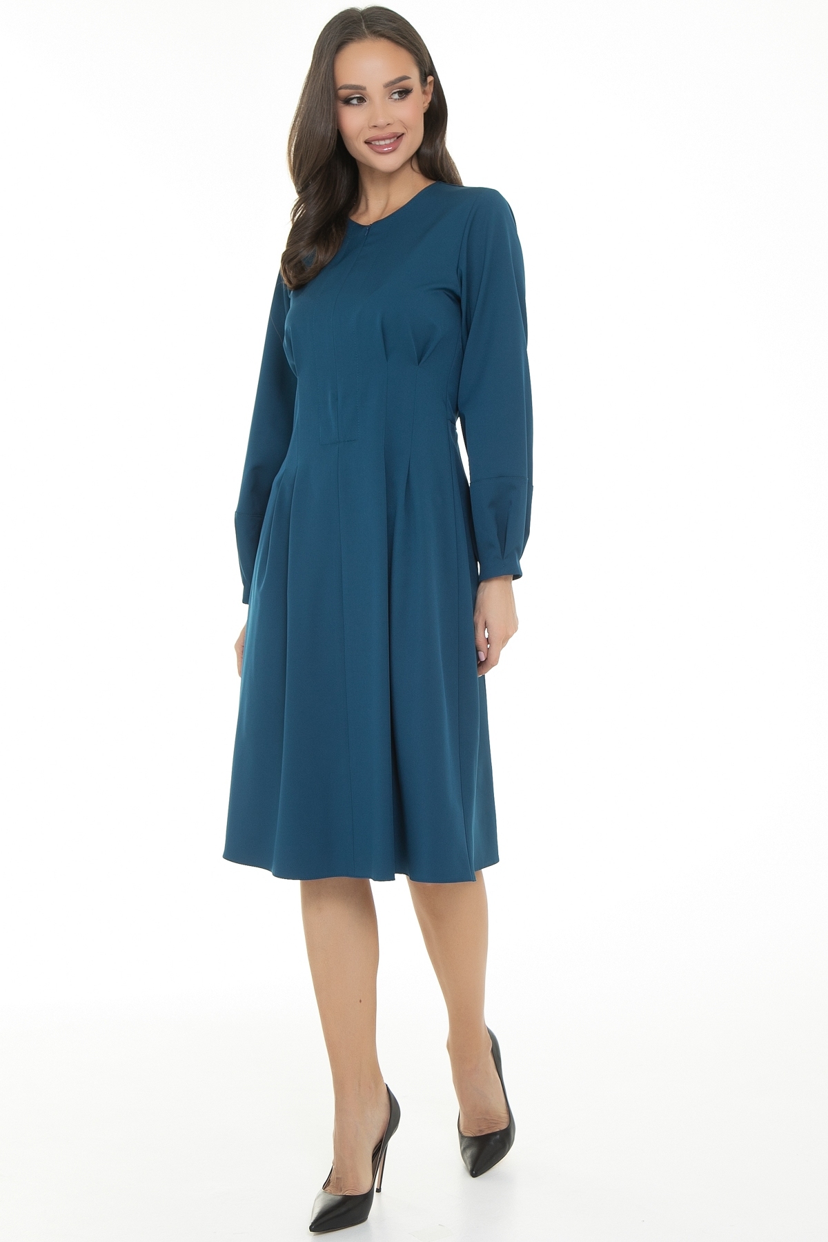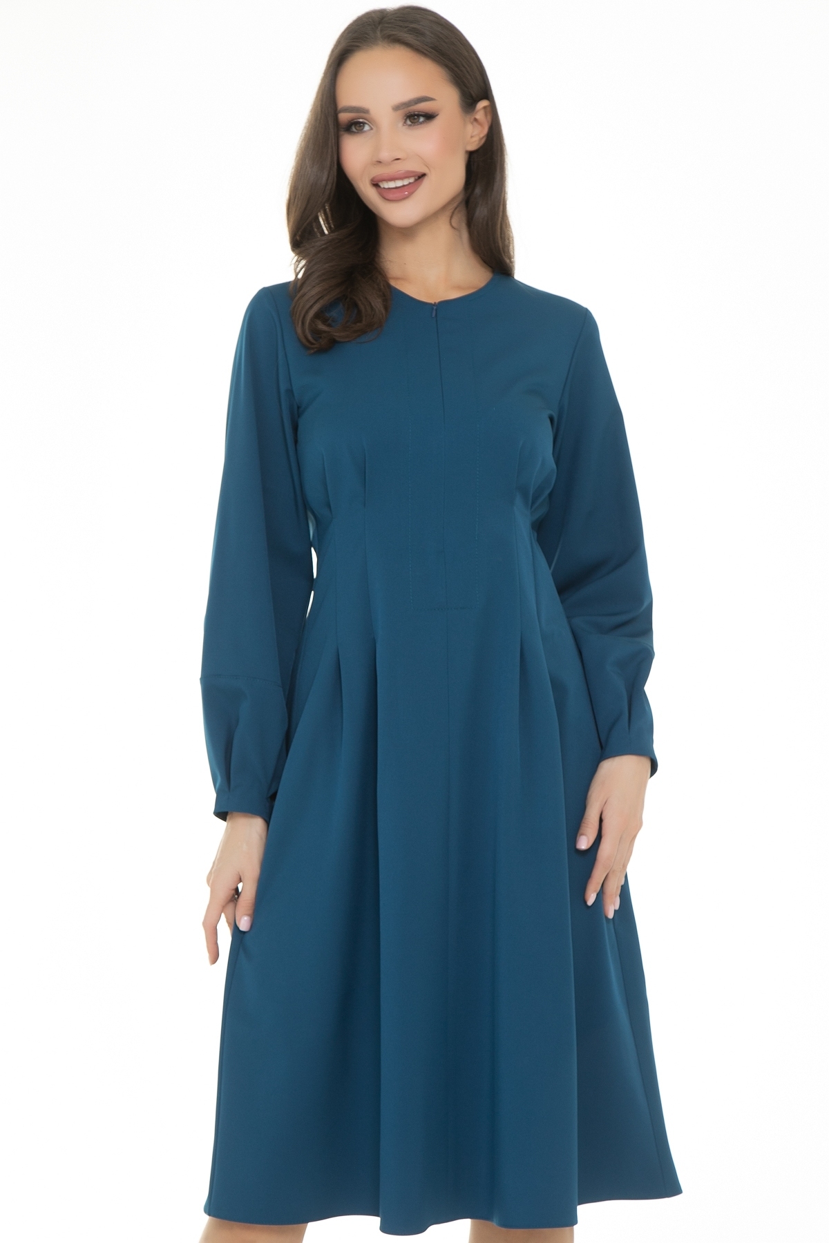 Однотонное платье свободного силуэта - идеальный выбор на особый случай. Пышные длинные рукава фонарики придают платью современный модный стиль, а уникальный крой формирует силуэт песочные часы, скрывая недостатки фигуры. Это элегантное платье подходит для различных мероприятий, как для праздника, особых случаев, так и на работу.  Благодаря струящемуся материалу и красивому крою это роскошное платье- отличный вариант для любой женщины. Спереди потайная молния- можно регулировать глубину выреза.