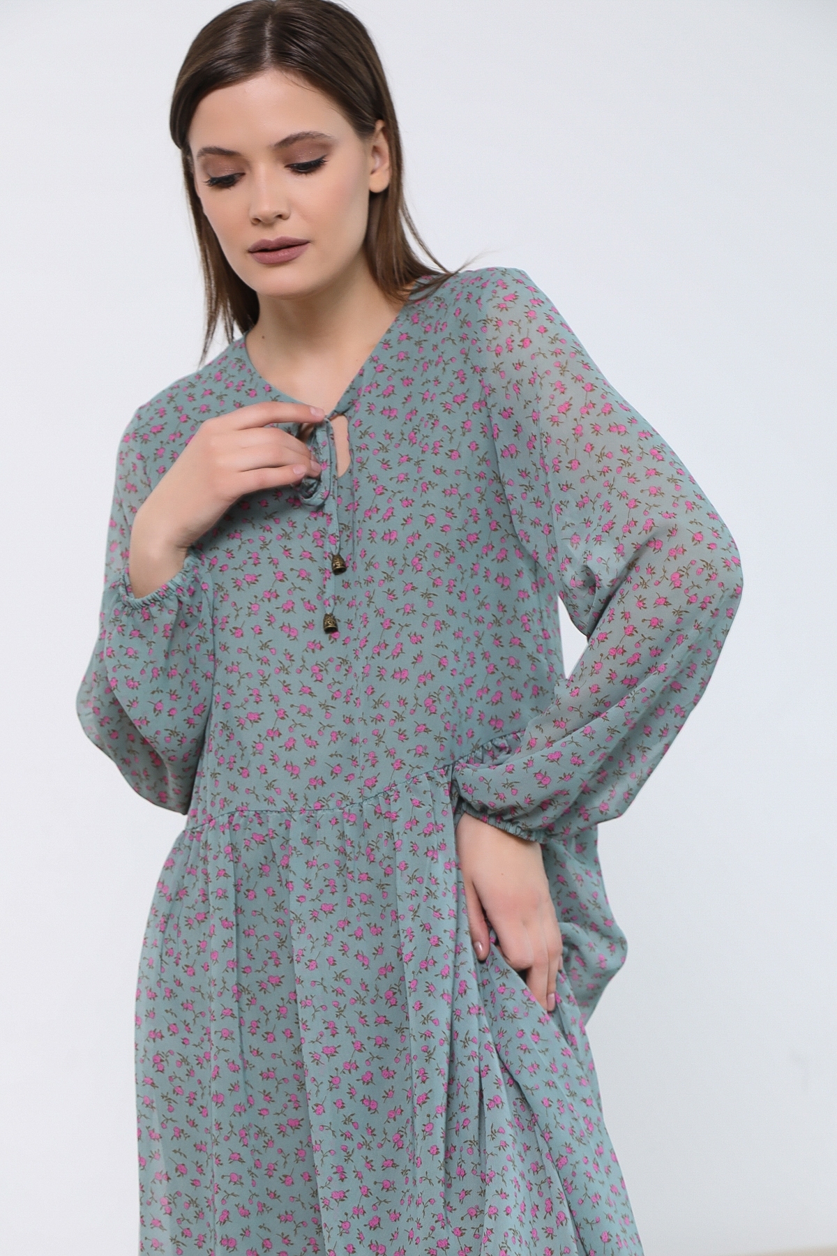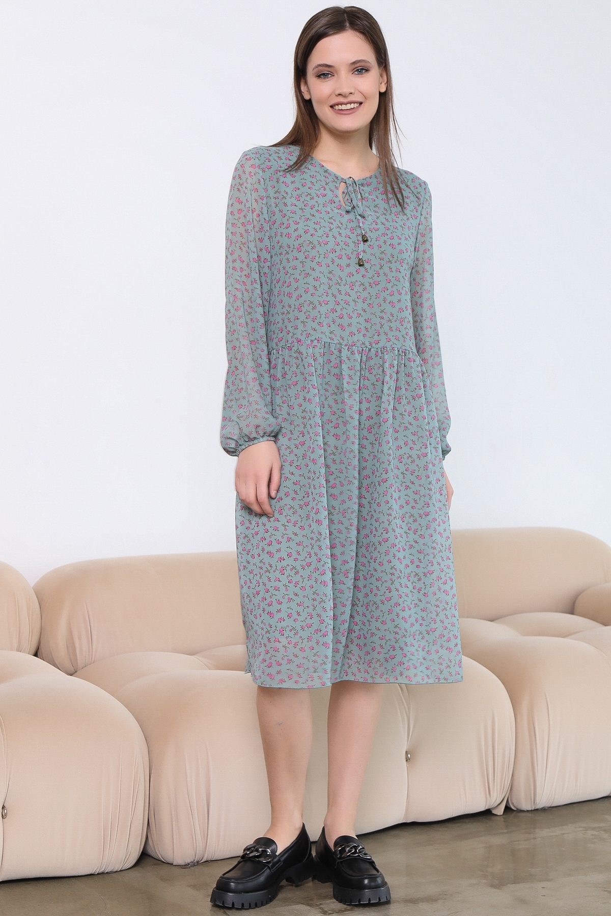 Превратите вечерние прогулки в романтичное приключение, а суетные будни в яркие моменты. Создано платье, которое Вы хотели! Шифоновые платья продолжают быть в тренде и в этом сезоне! Дизайнеры Diolche создали великолепное платье на любую фигуру. Вырез горловины в форме капли на завязках, рукава втачные,длинные в низу собраны на резину. Платье отрезное по линии талии. Низ платья обработан спец машиной.