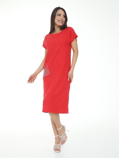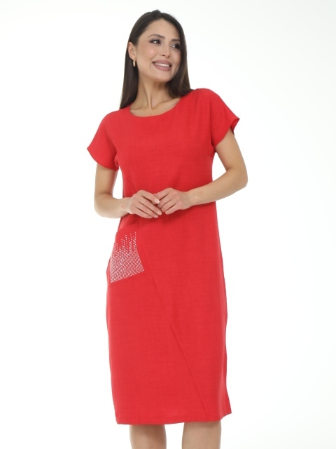 Стильное дизайнерское платье свободного силуэта со спущенным плечом прекрасно подойдет на любую фигуру. Сияющие стразы на кармане добавят изысканности.