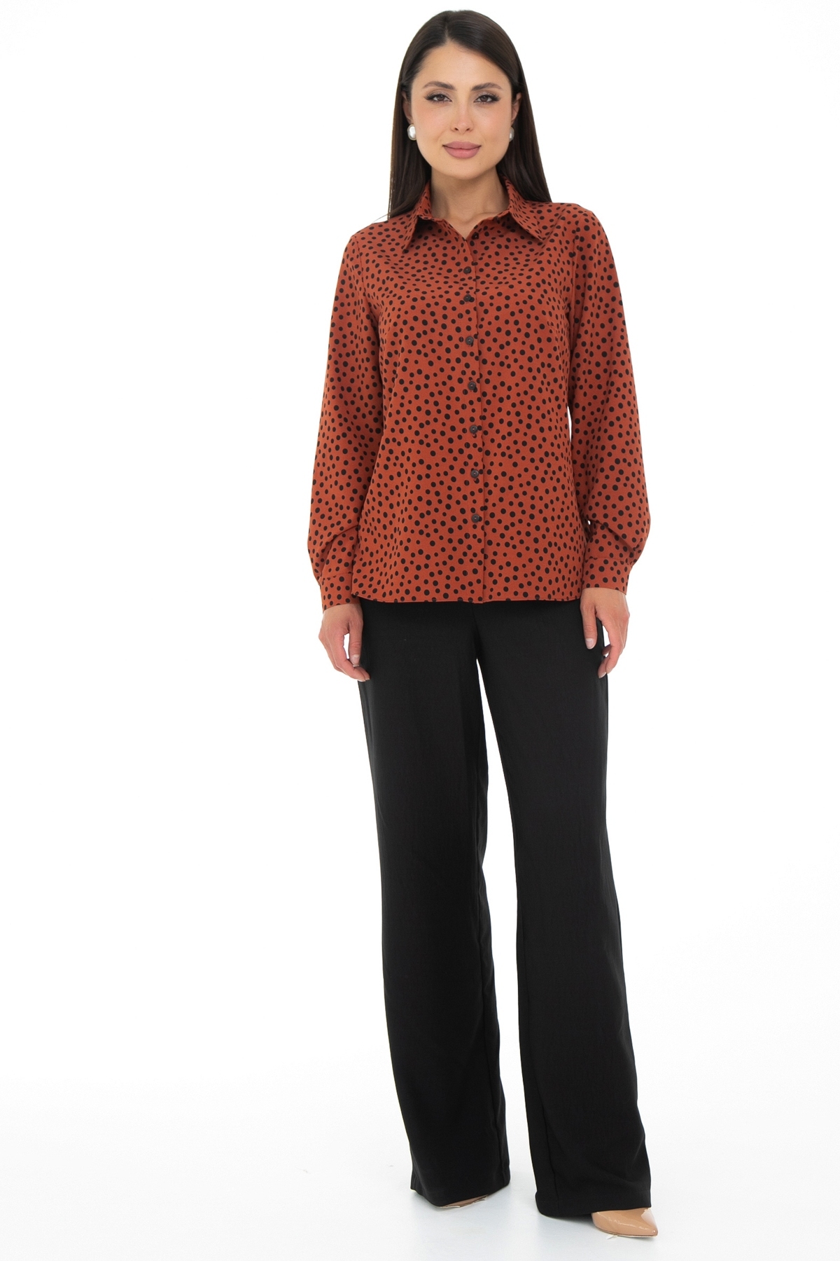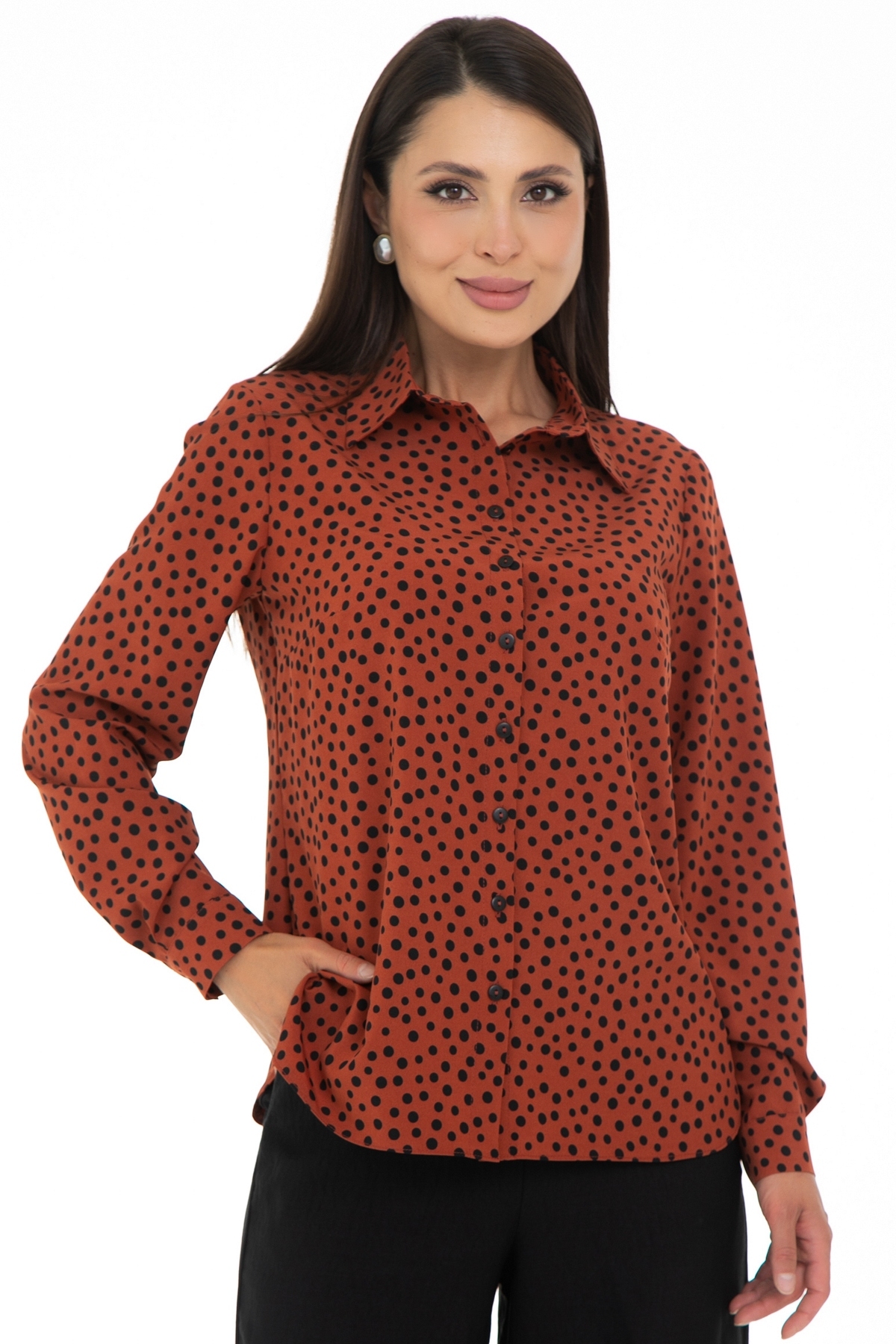 Возвращение любимой модели от Diolche. Блузка продуманного и универсального фасона, идеально подходящего под любой низ. Можно носить как с классическими брюками и юбками, так и с джинсами или под сарафан. Прекрасно смотрится как в заправленном состоянии, так и на выпуск. Классическая, немного приталенная рубашка с воротничком на стойке. Застёгивается спереди на пуговицы. Рукав втачной длинный на манжете. Спереди по бокам сделаны вытачки на грудь. По спинке сделаны вытачки в области талии. Удобная, комфортная вещь на все случаи жизни! Блузочная комфортная ткань, безупречная посадка!