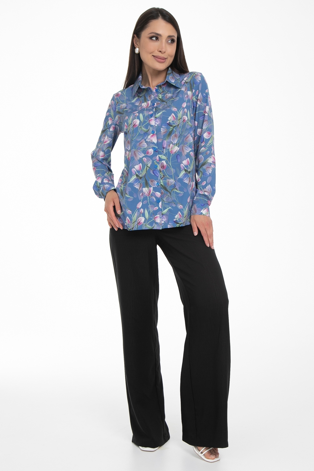 Возвращение любимой модели от Diolche. Блузка продуманного и универсального фасона, идеально подходящего под любой низ. Можно носить как с классическими брюками и юбками, так и с джинсами или под сарафан. Прекрасно смотрится как в заправленном состоянии, так и на выпуск. Классическая, немного приталенная рубашка с воротничком на стойке. Застёгивается спереди на пуговицы. Рукав втачной длинный на манжете. Спереди по бокам сделаны вытачки на грудь. По спинке сделаны вытачки в области талии. Удобная, комфортная вещь на все случаи жизни! Блзочная комфортная ткань, безупречная посадка!