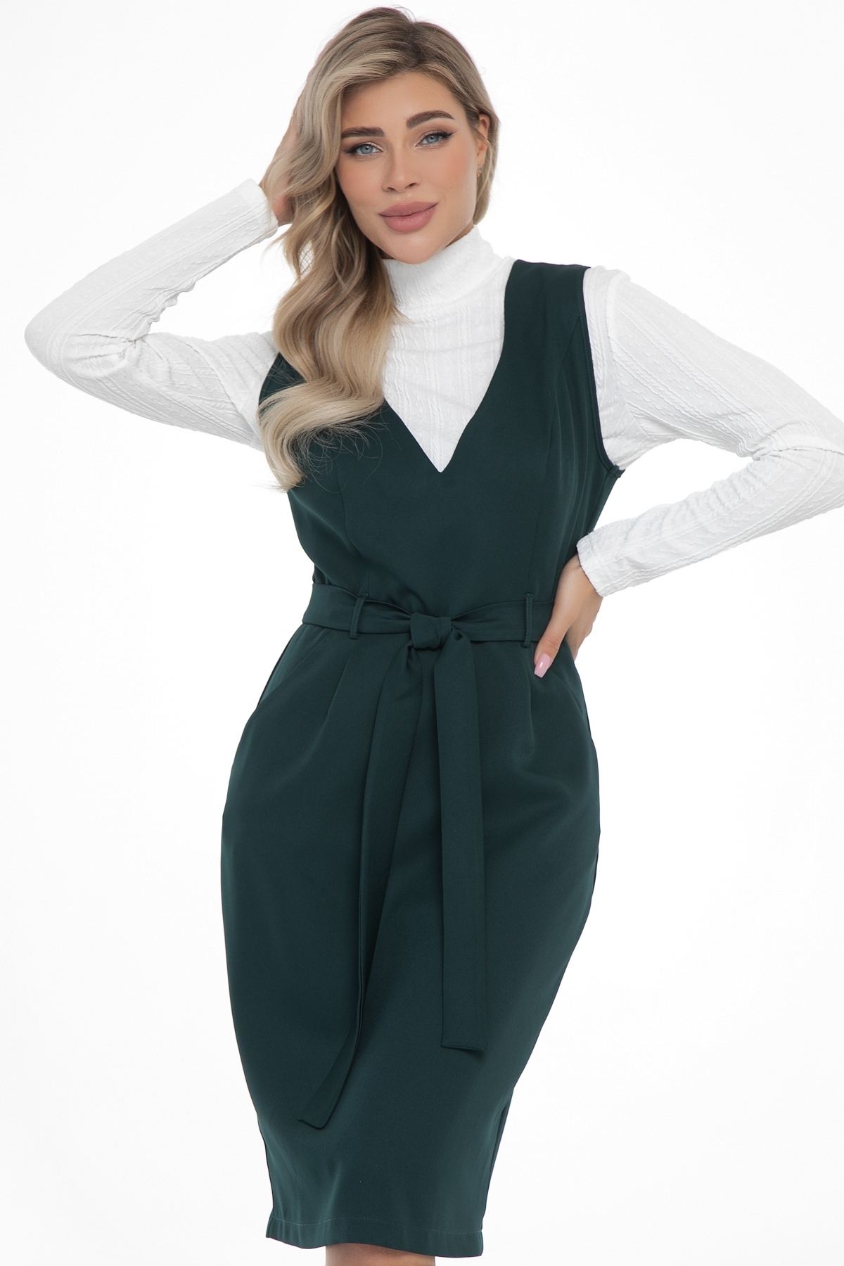 Хитовая модель бренда Diolche Изысканный сарафан позволит создать массу ярких образов и станет базовым предметомвашего гардероба. В нем обеспечен полный комфорт и свобода движений. Этот превосходный сарафан футляр в длине миди идеально сочетает современные тенденции с классическим стилем. Идеальная посадка по фигуре! Перед модели с рельефами, отрезной по линии талии с защипами, по спинке выточки приталивания, в среднем шве застежка потайная молния, для удобства движения по низу разрез шлица. Вырез горловины обработан обтачкой в чистый край, в боковых швах расположены удобные карманы. Сарафан идет в комплекте с поясом из основной ткани.
